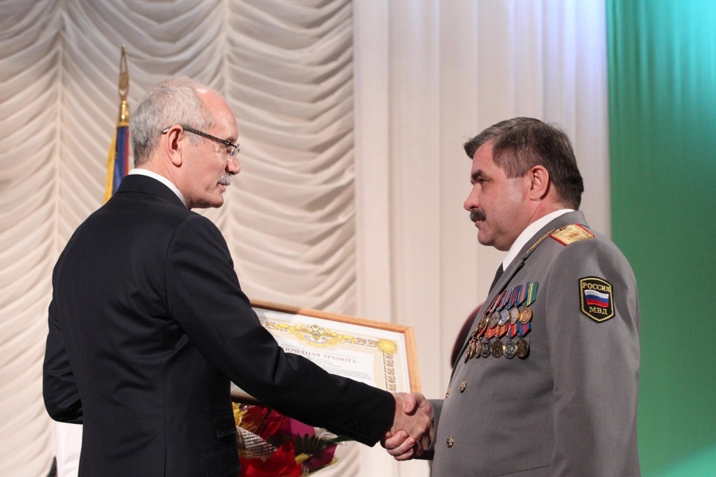 “2011 has become in many respects the turning point for employees of the Ministry for internal affairs. The federal law “About Police” has been passed. As a result, the internal structure of Russian law-enforcement bodies was substantially altered. In spite of reduction of the level of strength you've managed to avoid any failures in your activity and, as a result, prevented the splash of criminality and this is a good example of efficiency of your work already today”.