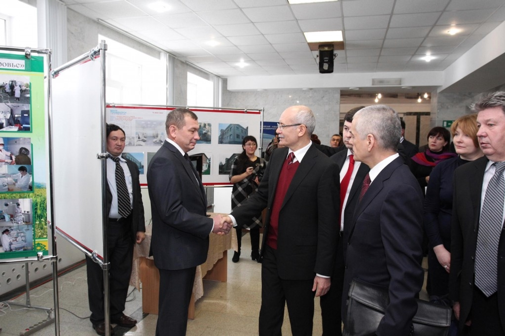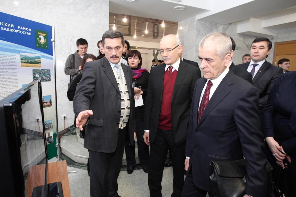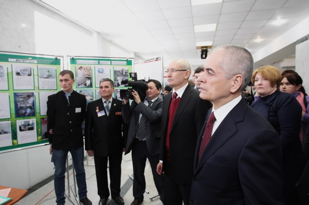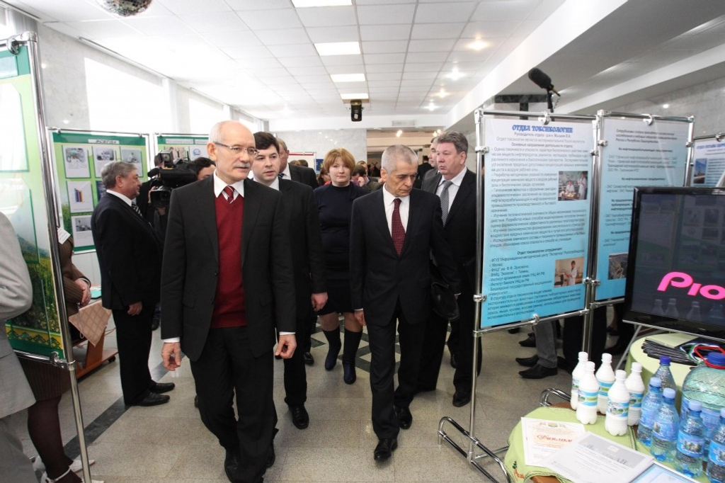 The President of Bashkortostan Rustem Khamitov and the chief sanitary doctor of Russia Gennady Onishenko, who arrived from Moscow in Ufa for participation in the local medical council, inspected the exhibition.