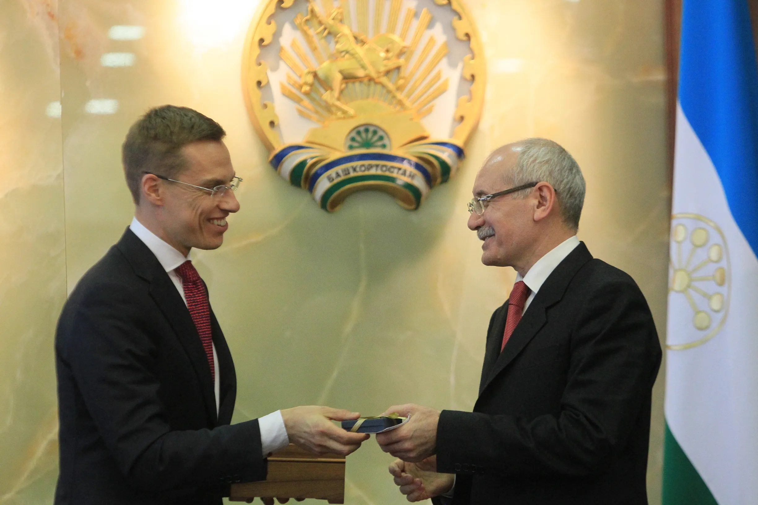 On December 13 the President of Bashkortostan Rustem Khamitov held a meeting with the official delegation of Finland, headed by the Minister for affairs of Europe and foreign trade Alexander Stubb. The parties were discussing some problems of economic cooperation. The President RB acquainted the guests with economic and industrial potential of the Republic. For today Bashkortostan holds the seventh place in Russia by population and is found in the Top 10 of Russian regions by industrial production. The revenues, obtained from oil mining and refining and oil chemistry make up 30% of the Republican budget.