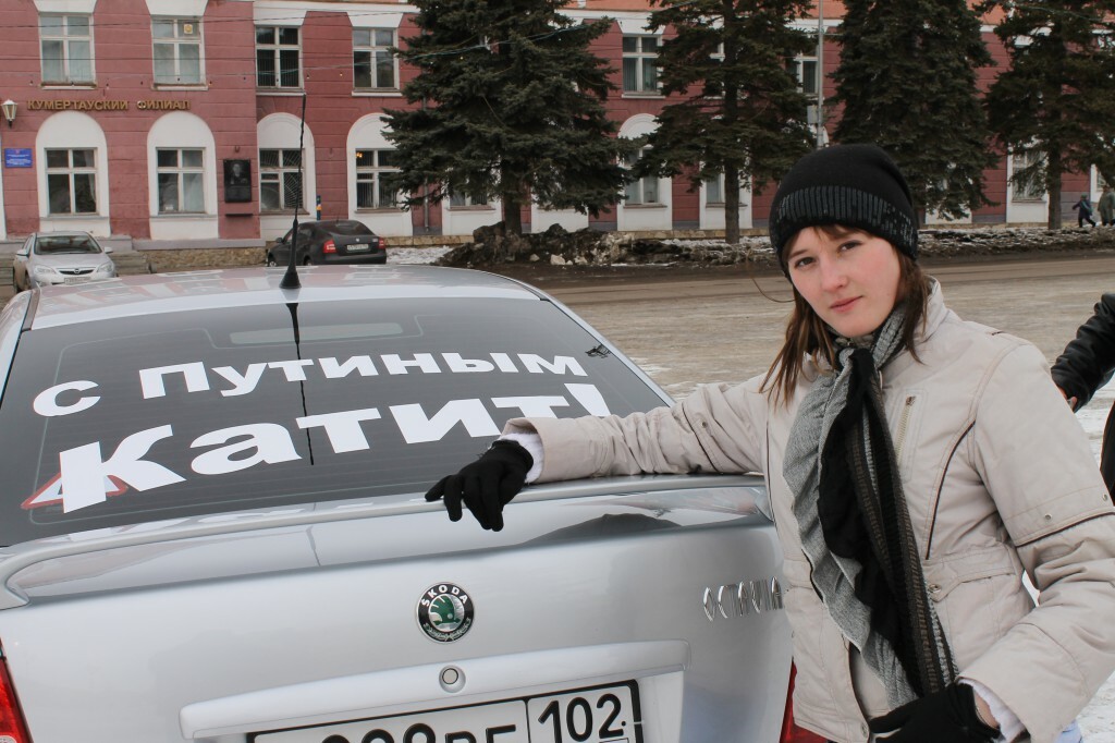 A motor race in support of a presidential candidate Vladimir Putin, organized by local “United Russia Young Guardians” has taken place in the town of Kumertau, Bashkiria. More than 40 young people on 20 cars were taking part in it.