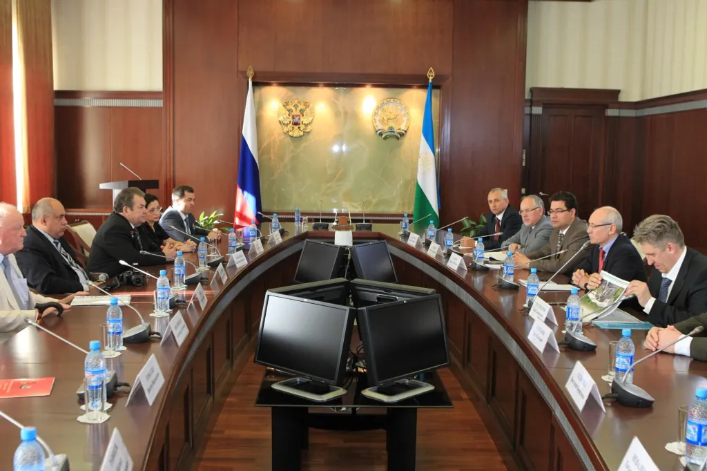 Delegation arrived in Ufa for participation in “Gagarin’s Days in Republic of Bashkortostan”. Prospects of opening of an aviation-space center for children and teenagers, problems in activity of the Space Service Center, established at the Bashkir State University, a trip of children from our Republic to cosmodrome “BAIKONUR” and other problems were under discussion in the course of the meeting.