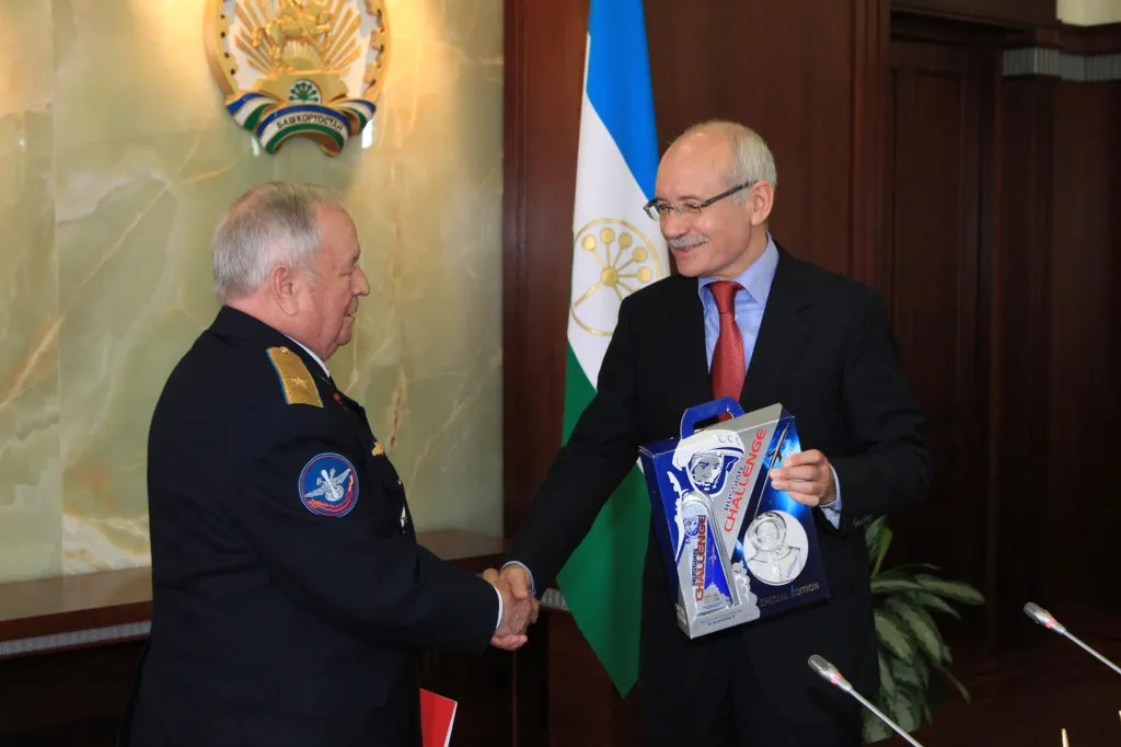 On May 22 the President of Bashkortostan Rustem Khamitov has held a meeting with the delegation of Russian Cosmonautics Federation, headed by the space pilot of the USSR, twice Hero of the Soviet Union, the President of Russian Cosmonautics Federation Vladimir Kovalenok.
