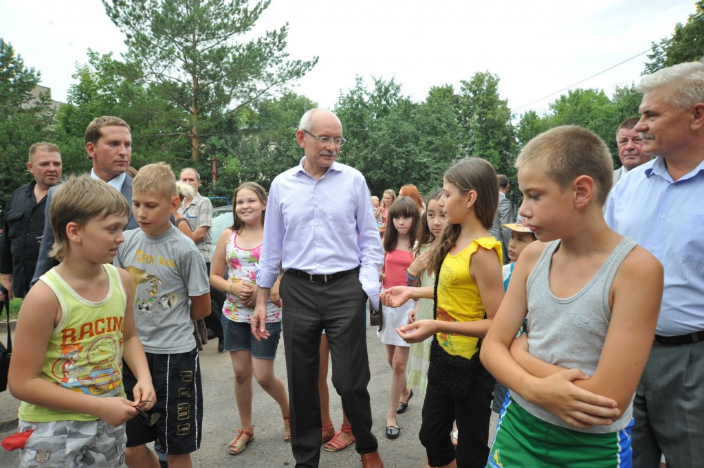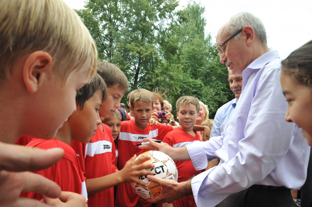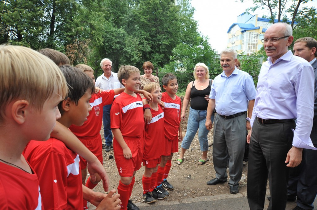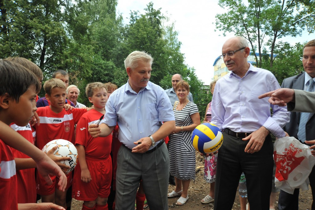 For this time the court yard of the house No.45/1 considerably changed. A number of garages were pulled down, civilised car parking to appear on their place soon. Also roads are expanded and asphalted. Besides it, a children's playground was completely renewed in the court yard, but local children asked the President for a good arranged territory for playing sports. Rustem Khamitov paid this great attention and said that the problem to be solved. Moreover, there is a children's soccer team in the court yard which participates in every possible tournaments. Young sportsmen received as a gift from the President football and volleyball balls with his autograph.