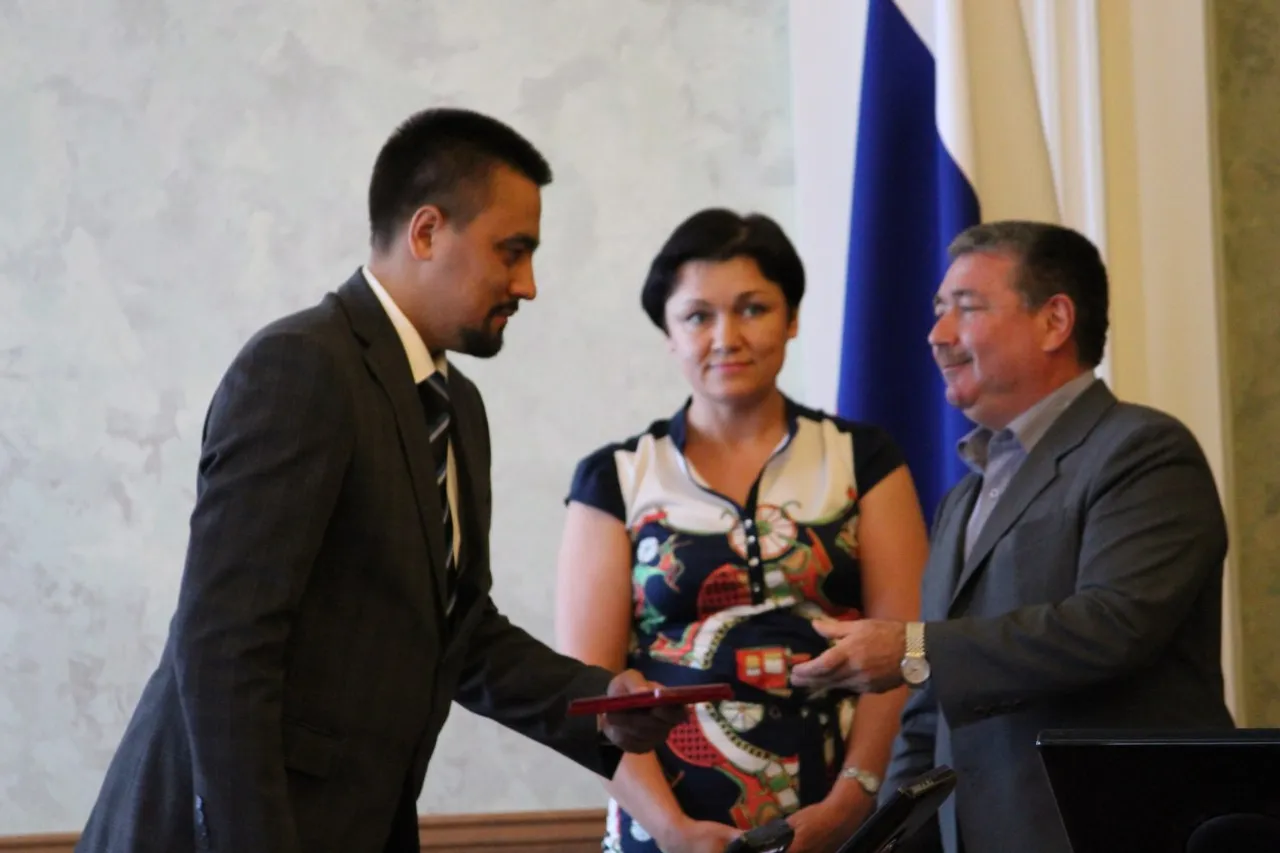 The Chairman of Youth Public Chamber at the State Assembly RB Nikolay Samoilenko and the Chairman of the Commission on Social Policy and Public Health Service Tagir Gizatullin are awarded with «Patriot of Russia» medals. The awarding ceremony took place within the limits of meeting of Interdepartmental Coordination Council on Promotion of Patriotism and Preliminary Military Training chaired by the Deputy Prime-Minister of Government RB Marat Magadeev.