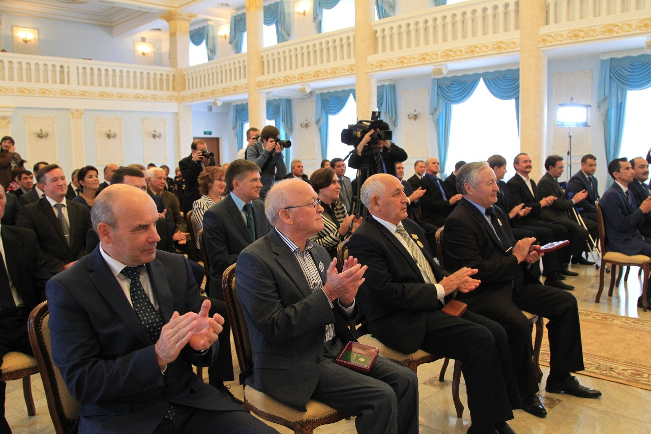 UFA, 4 September 2015. /Bashinform News Agency, Iliya Spiridonov/. On September 3, in Ufa the Head of Bashkortostan Rustem Khamitov presented state awards of the republic. 45 professionals of industry, energy, construction, transport, housing and communal services, trade and public catering, public service, municipal government, law enforcement, health, culture and the arts were awarded orders, marks of distinction, honourary diplomas and titles.