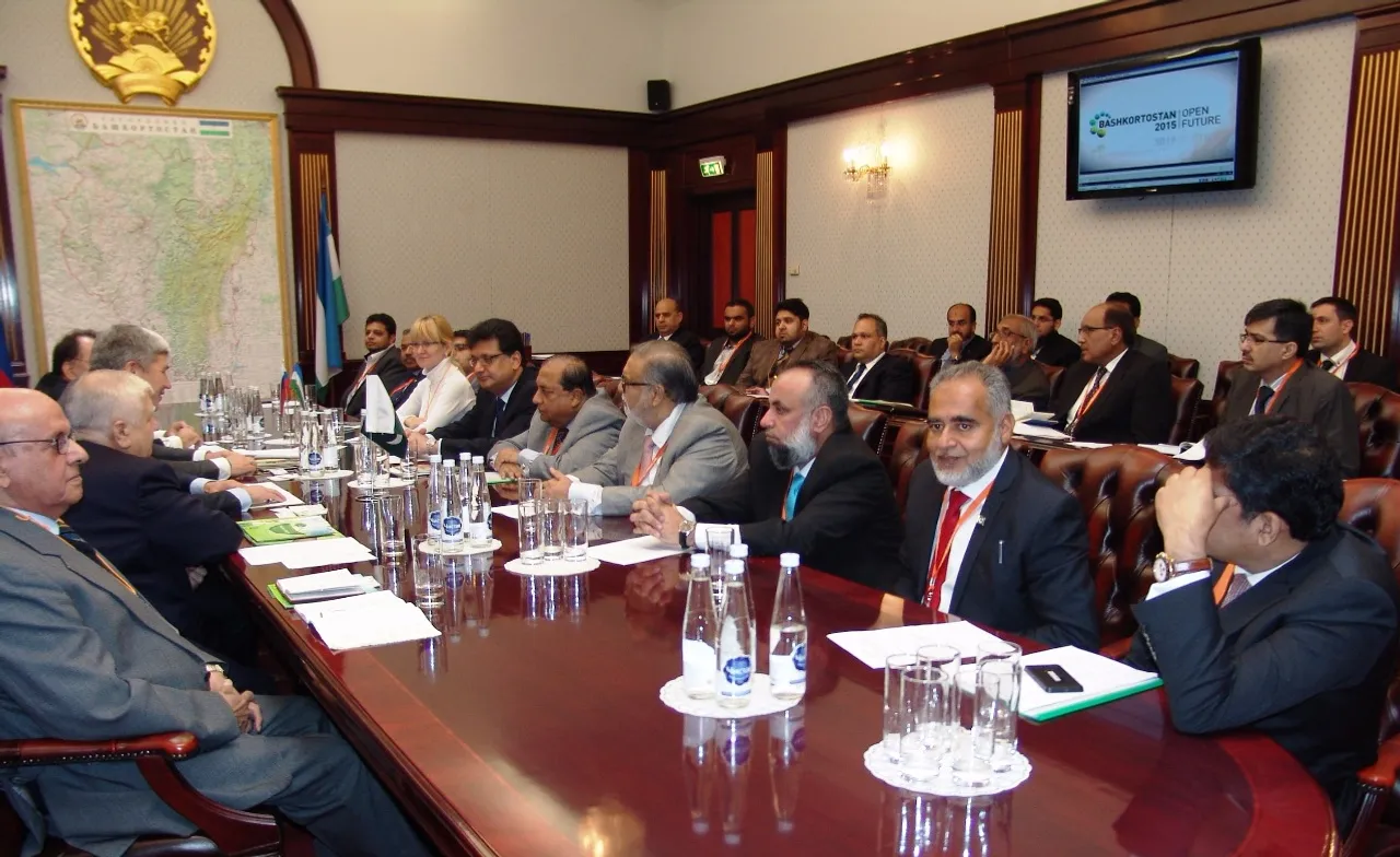 UFA, 15 September 2015. /Bashinform News Agency, Arina Rakhimkulova/. In the conference hall of Bashkortostan Plenipotentiary Mission under the President of the Russian Federation a meeting with the delegation of the Islamic Republic of Pakistan was held. A large group of representatives of business circles of this country came to Moscow with a week-long visit to establish cooperation with Russian manufacturers. They expressed a great interest in cooperation with business representatives of Bashkortostan, the head of the press centre of Bashkortostan Mission in Moscow Gulchachak Hannanova informs.