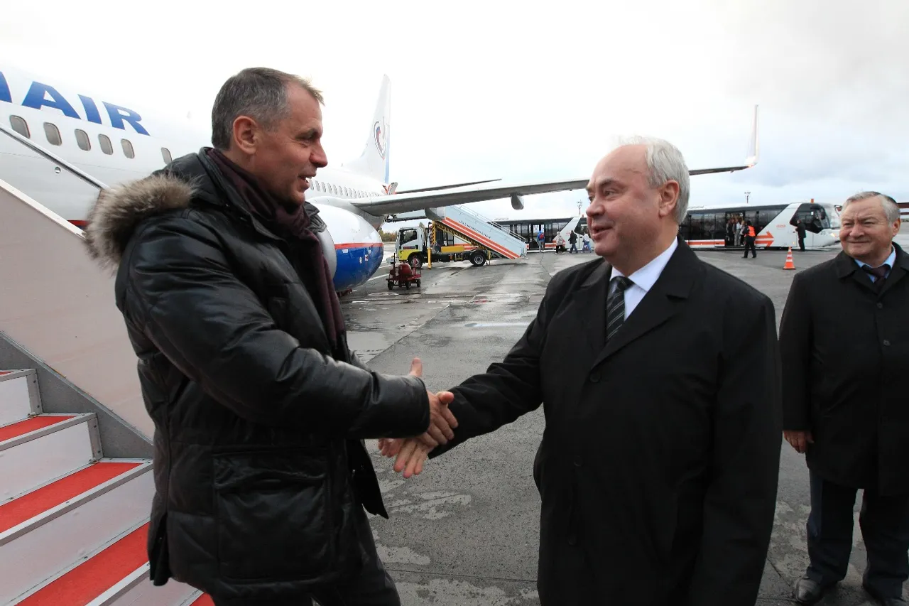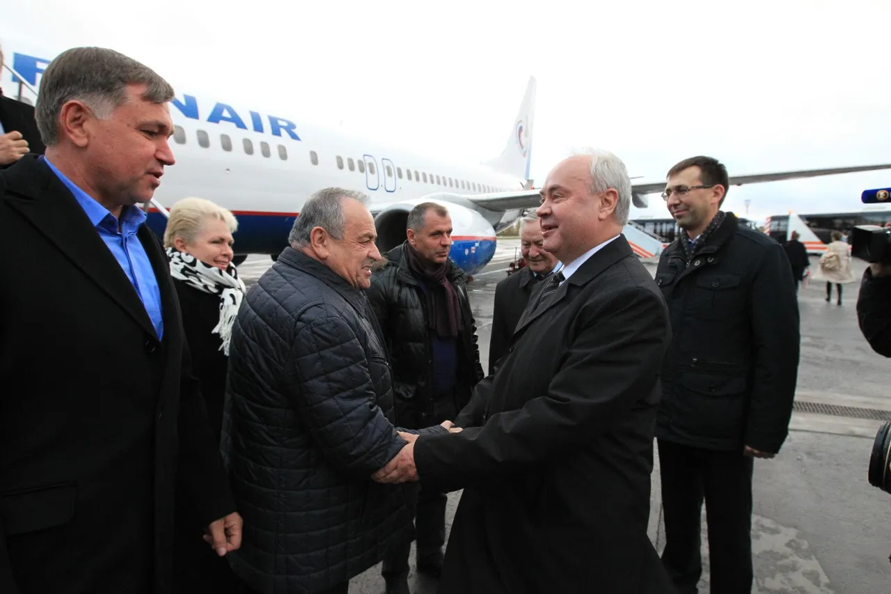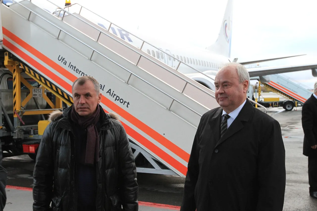 UFA, 9 October 2015. /Bashinform News Agency, Arina Rakhimkulova/. An official delegation of the State Council of the Republic of Crimea, led by the parliament speaker Vladimir Konstantinov arrived in Ufa. At the airport guests were welcomed by the Chairman of the State Assembly of Bashkortostan Konstantin Tolkachev, his deputy Franis Saifullin, the Head of the Secretariat of the State Assembly Marat Shayhulov. The Crimean Parliament delegation included the chairmen and members of the relevant committees, the representatives of the department.