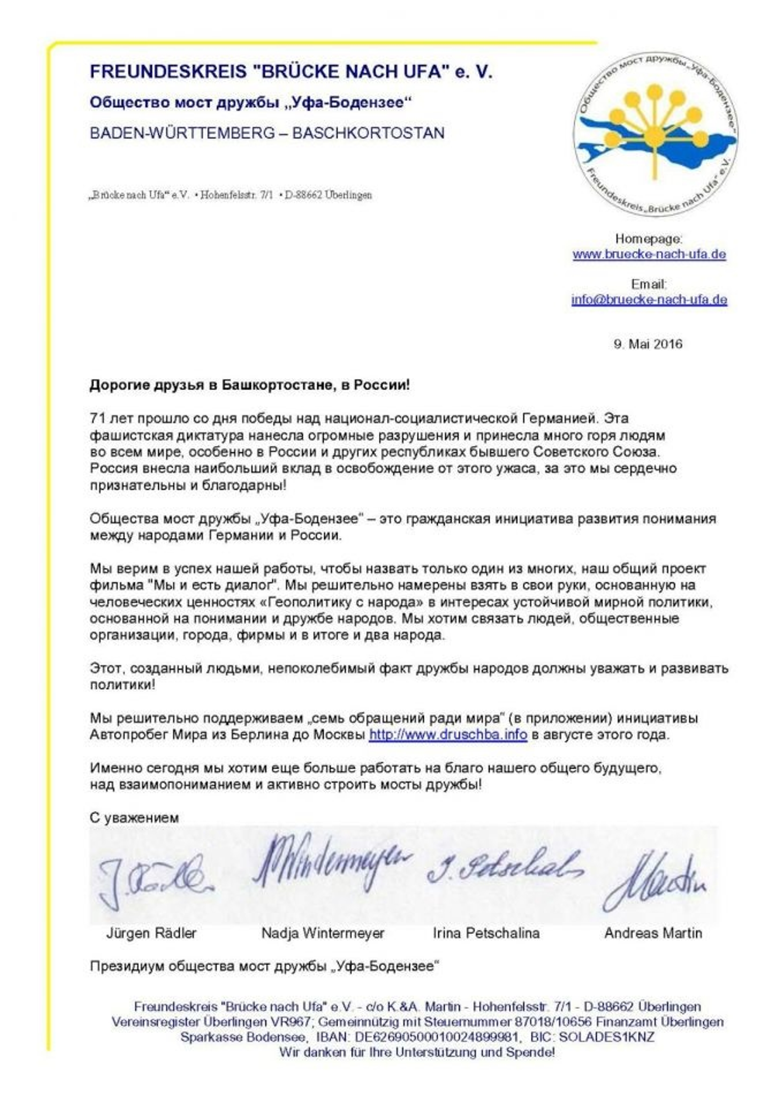 "Bridge of Friendship Ufa - Bodensee" Association supported "Seven Appeals for Peace"