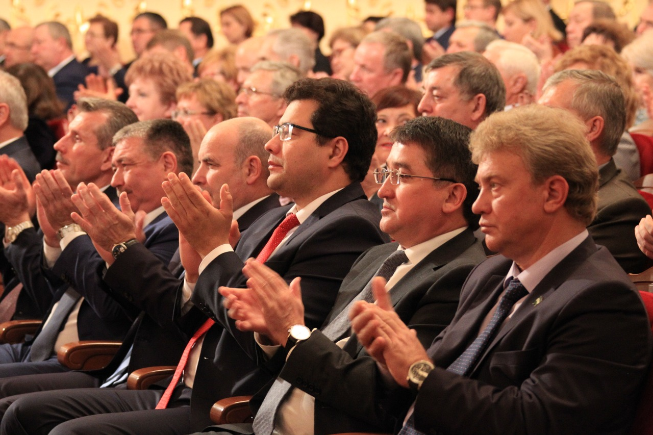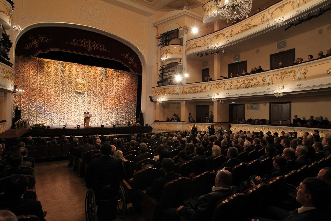 UFA, 7 October 2016. /Bashinform News Agency, Alexander Smirnov/. On October 6, the Head of Bashkortostan Rustem Khamitov spoke at the solemn meeting dedicated to the Republic Day, which was held at the Bashkir State Opera and Ballet Theatre in Ufa.