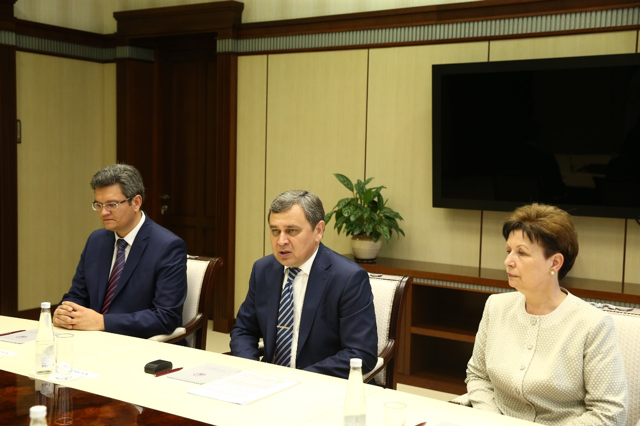 UFA, 29 June 2017. /Bashinform News Agency/. The Head of Bashkortostan Rustem Khamitov met with the leadership of the Central Election Commission of Bashkortostan, which yesterday started working in a new composition. The meeting was attended by the Chairman of the CEC RB Khaidar Valeev, his deputy Marat Gadilov and the secretary of the CEC RB Marina Dolmatova. Issues of preparation for the upcoming elections, improvement of territorial election commissions work, interaction with political parties were discussed.