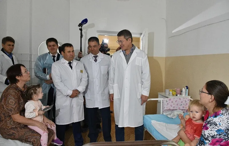 Radiy Khabirov visited the cardiology and pediatric departments, talked with patients undergoing treatment there, was interested in catering, provision of medicines and necessary equipment, and listened to their opinions and wishes.