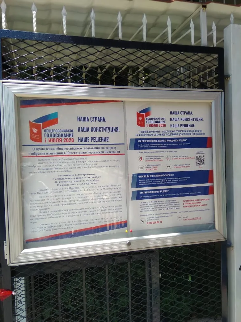 On July 1, the Consulate General of the Russian Federation in Antalya organized a vote on amendments to the Constitution of the Russian Federation for Russian citizens living in Turkey. It took place at the diplomatic mission premises. A free bus was organized for Russian citizens who live in Antalya.