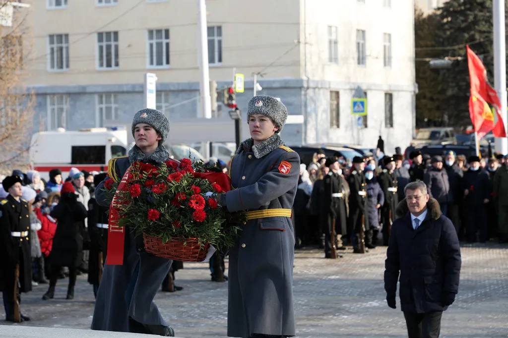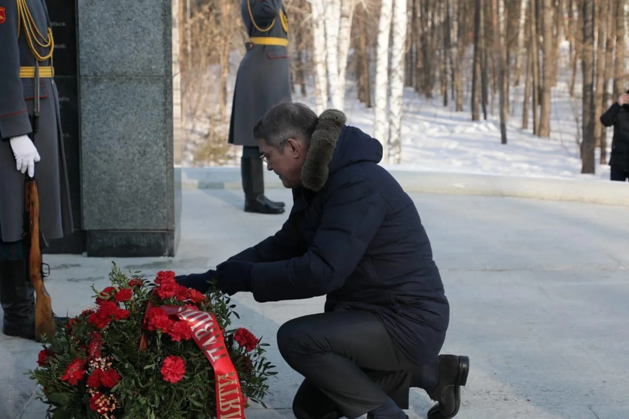 The Head of Bashkortostan today honored the memory of the republic residents who performed their official duties outside the Fatherland and laid flowers at the "Grieving Mother" memorial on Komarov Street in Ufa.