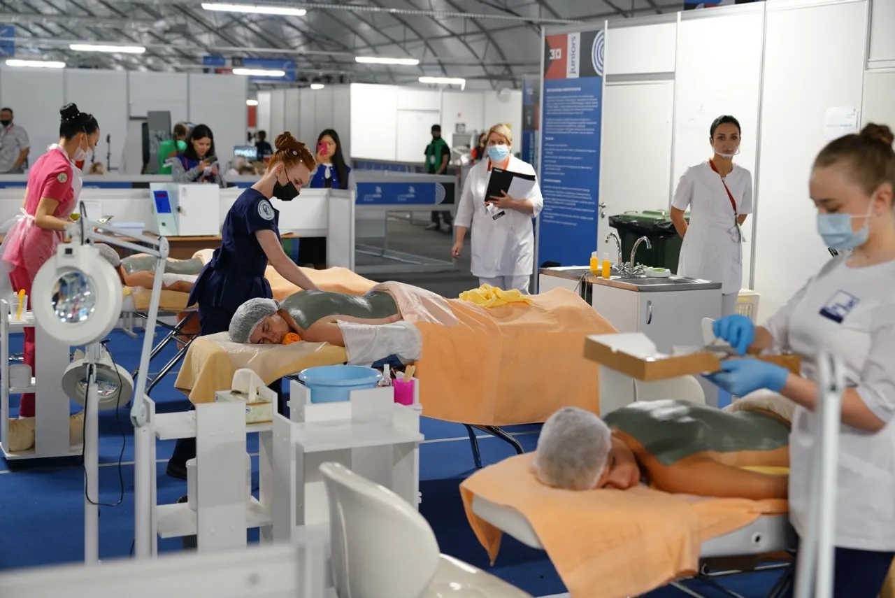 In a separate pavilion, there are competencies "Aesthetic cosmetology", "Dentistry", "Hairdressing art", where Radiy Khabirov talked with the main experts of these areas.