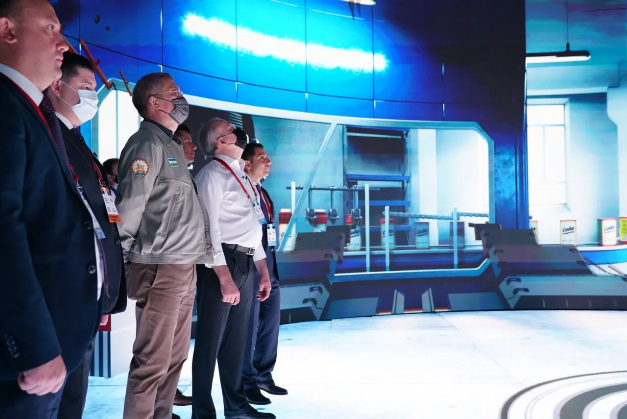 At the Bashkir Soda Company stand, the Head of Bashkortostan watched a presentation on the history and current activities of the enterprise.