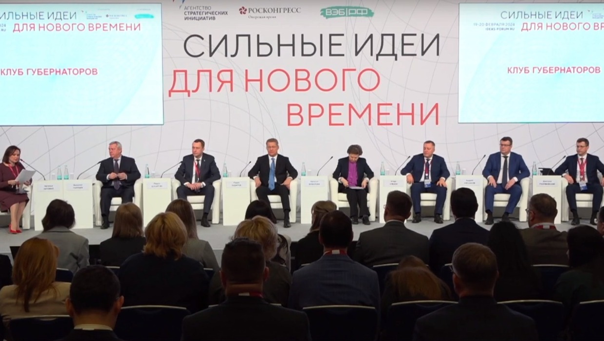 Radiy Khabirov participates in a meeting of the “Governors Club”. Introducing the Head of the Republic, the moderator named Bashkortostan, the record holder for the number of applications submitted to the forum “Strong Ideas for New Times” in 2024 - a total of 3,707 ideas were submitted.