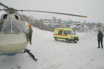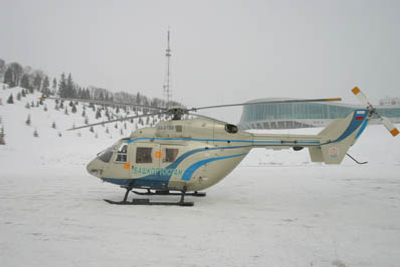 The helicopter BK-117, made in Germany, possesses the range ability 550 kilometers and thus is able to cover the major part of the Republic. The helicopter’s cabin, originally designed for transportation of seriously ill non-transportable patients, has eight configurations for placement of specials equipment, patients and accompanying medical personnel.