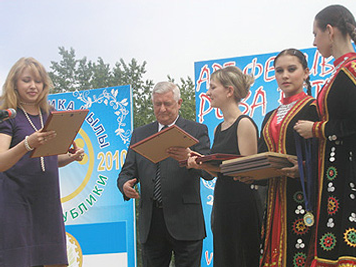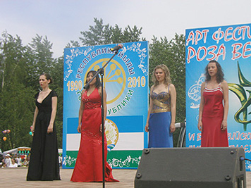 The creative competition, held within the frames of the international festival “The Wind Rose-2010”, was devoted to the 65th anniversary of the Great Victory, to the Republic Year and to the 30th anniversary of the town of Agidel. It was organized by the children’s charitable fund “Art Festival-The Wind Rose”, the Ministry of culture and national politics RB and by the Agidel administration. It is worth mentioning the international children’s and youth art contest “The Wind Rose-2010” is included into the list of Olympiads and contests within the frames of the national project “Education”. During three days – from the 13th to the 15th of May – about 700 young talents, aged under 19, from Bashkortostan, Tatarstan, Udmurtia, Chelyabinsk, Tyumen, Amur and Perm regions were demonstrating the art of choreography, vocal and instrumental music.