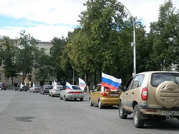The press-service of “United Russia” regional division reports the pack of 20 cars, decorated with the Russian flags, has cruised along the central streets of Ufa.