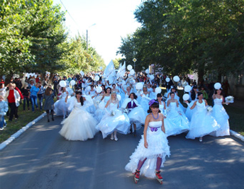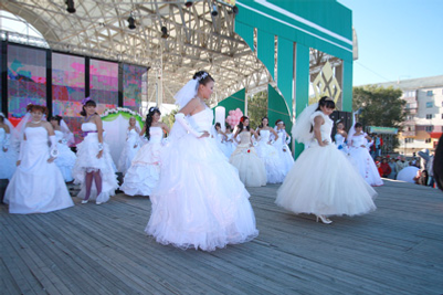 The Fiancées' Parade organized in front of the City Wedding Palace became a real surprise. It gathered more than 50 participants who not only walked along the central streets of the city, but also participated in the improvised heat, fashion parade and dance show that aroused storm of cheers of the viewers.