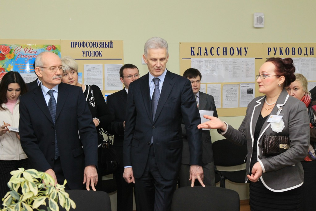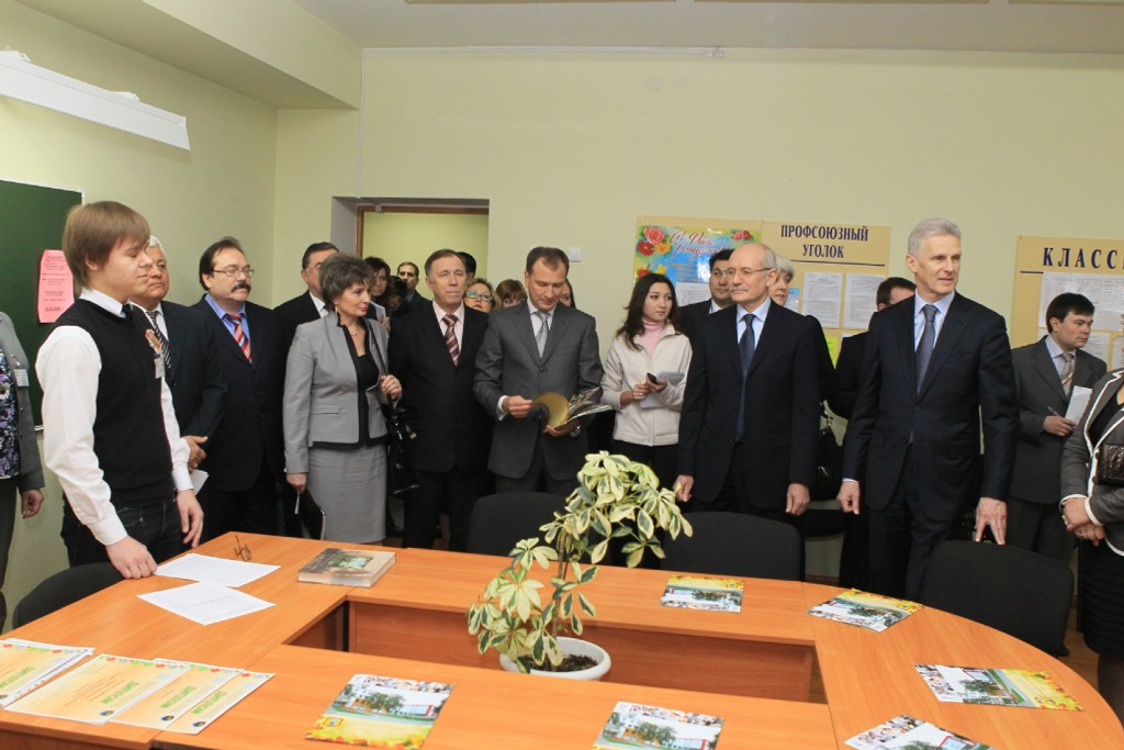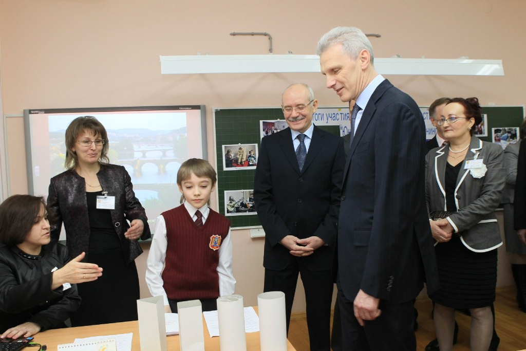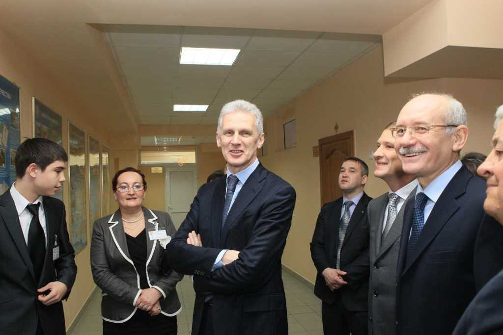 As the gymnasium’s director Irene Kiekbaeva told the guests, the gymnasium celebrated its 55th anniversary in 2010. Now this is the leading education institution of the city with 1598 pupils. They have a chance to study five languages here: Russian, Bashkir, English, French and German. Besides, the senior pupils have the choice to study on five educational profiles: philological, physical-mathematical, natural sciences, IT and social-economic. Further Andre Fursenko and Rustem Khamitov visited the ecological class, where the future defenders of the nature study. The excursion over the gymnasium ended in the conference hall, where Andre Fursenko communicated with the heads and teachers of Ufa schools.