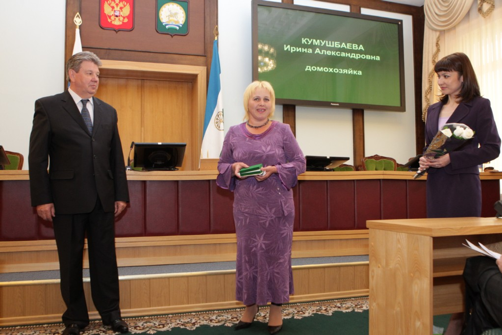“Your status – the status of mother with many kids – is considered the highest in the Republic” – Fidus Yamaltdinov said, opening the solemn ceremony – “Now the priorities in social policy of Bashkortostan are given to family – the basic cell of our society and Republican authorities consider making favorable conditions for family life, for child birth and rearing, protection of health of mothers and children as one of its key targets. All measures, aimed at the support of families, are approved on the legislative level: various federal and Republican payments, preferences in payments for housing and communal services, free transport, free school meals and school uniforms. Besides, the families with many children make use of state backing in housing acquisition. The Republican authorities intend to fulfill these and other obligations before such families henceforth”.