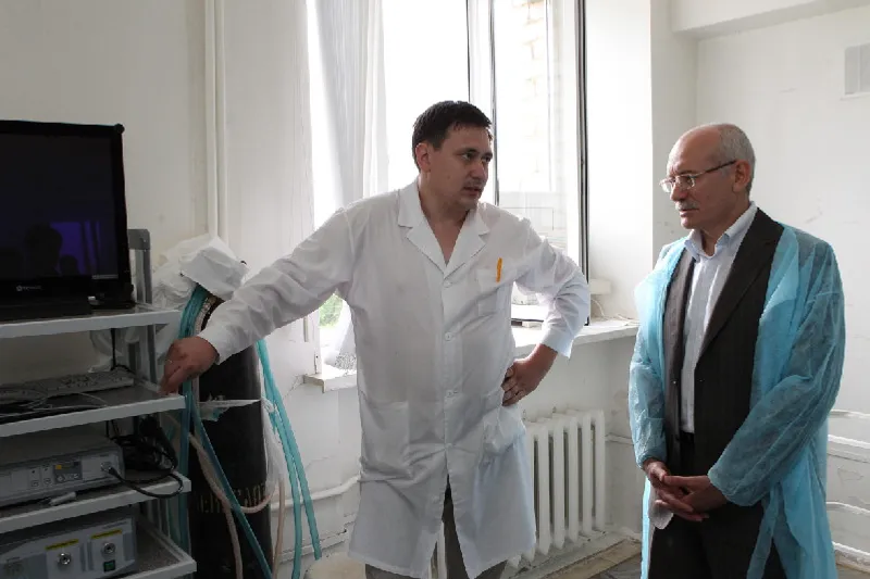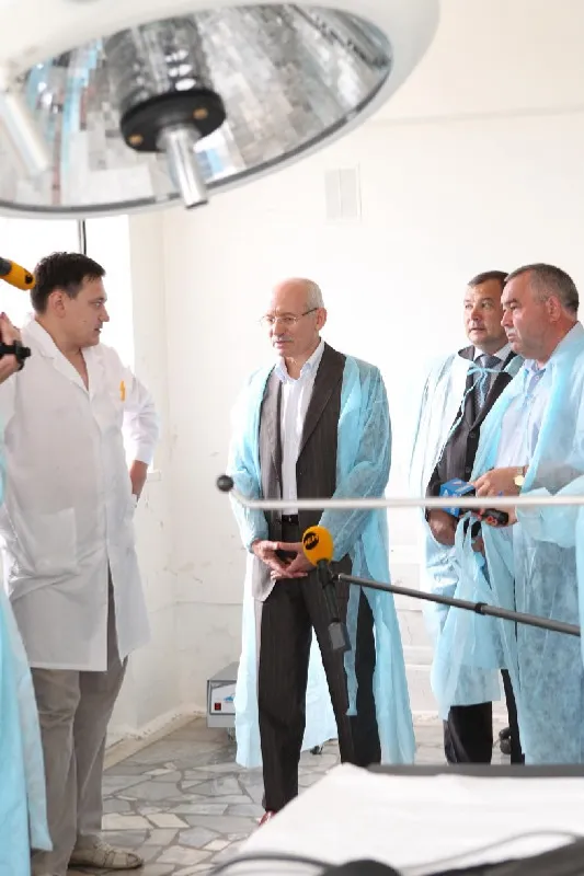 Rustem Khamitov inspected the reanimation block, surgical wards and the operation room and communicated with the personnel. As the medics say, the work conditions and salaries here are quite good but the problem of housing for young specialists is one of the hottest and if this problem were solved, the number of young medics, wishing to stay here, would be much higher.