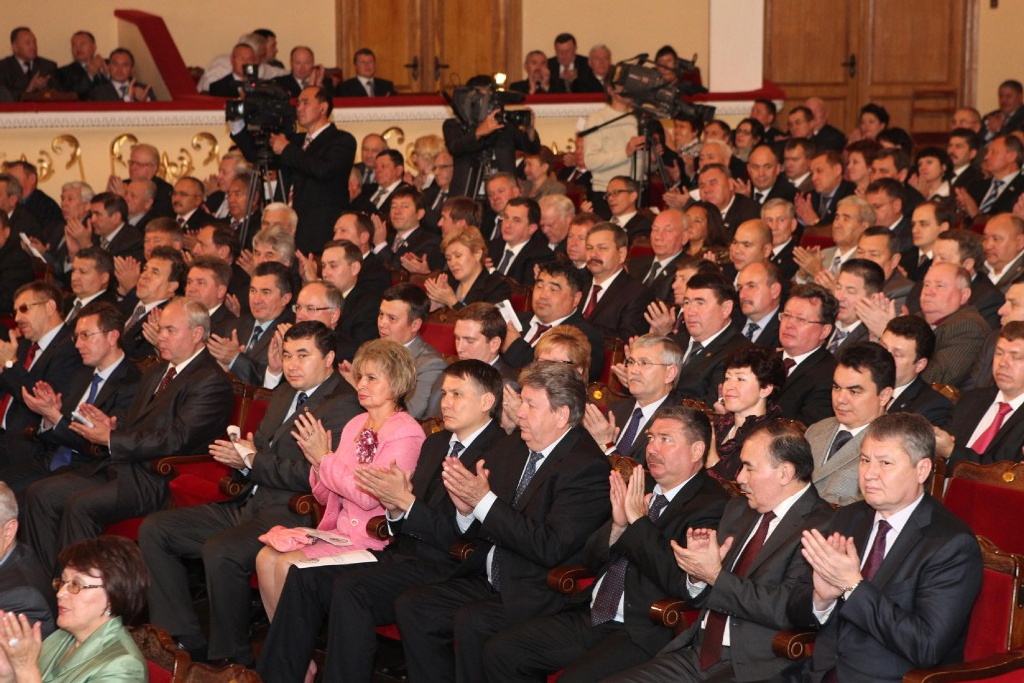 “Dear friends!” - he said - “Today we are celebrating special holiday – the day of the Republic, the day of our motherland, the day of the land, uniting all of us. When we pronounce the word “Bashkortostan”, a bright mosaic stands before our eyes: the peaks of ancient Ural mountains, wide steppes, thick forests and blue lakes, oil derricks and plant pipes, farms and harvesters, cottages of the villagers and the roads, stretching far away. It took less than one century to make Bashkortostan a powerful, industrial, educational and cultural center and at that the Republic managed to keep its originality, the unique Bashkir culture and the languages of all nations, inhabiting the region. For these years the biggest in Russia oil-mining and oil-refining center, powerful machine-building and instrument-making, agriculture, building industry, metallurgy, light and food industry were made. We have science and education system, worth to be proud of. All abovementioned allows the Republic to remain one of the leading regions in Russian Federation and we have to say many thanks to all Bashkir toilers for that.