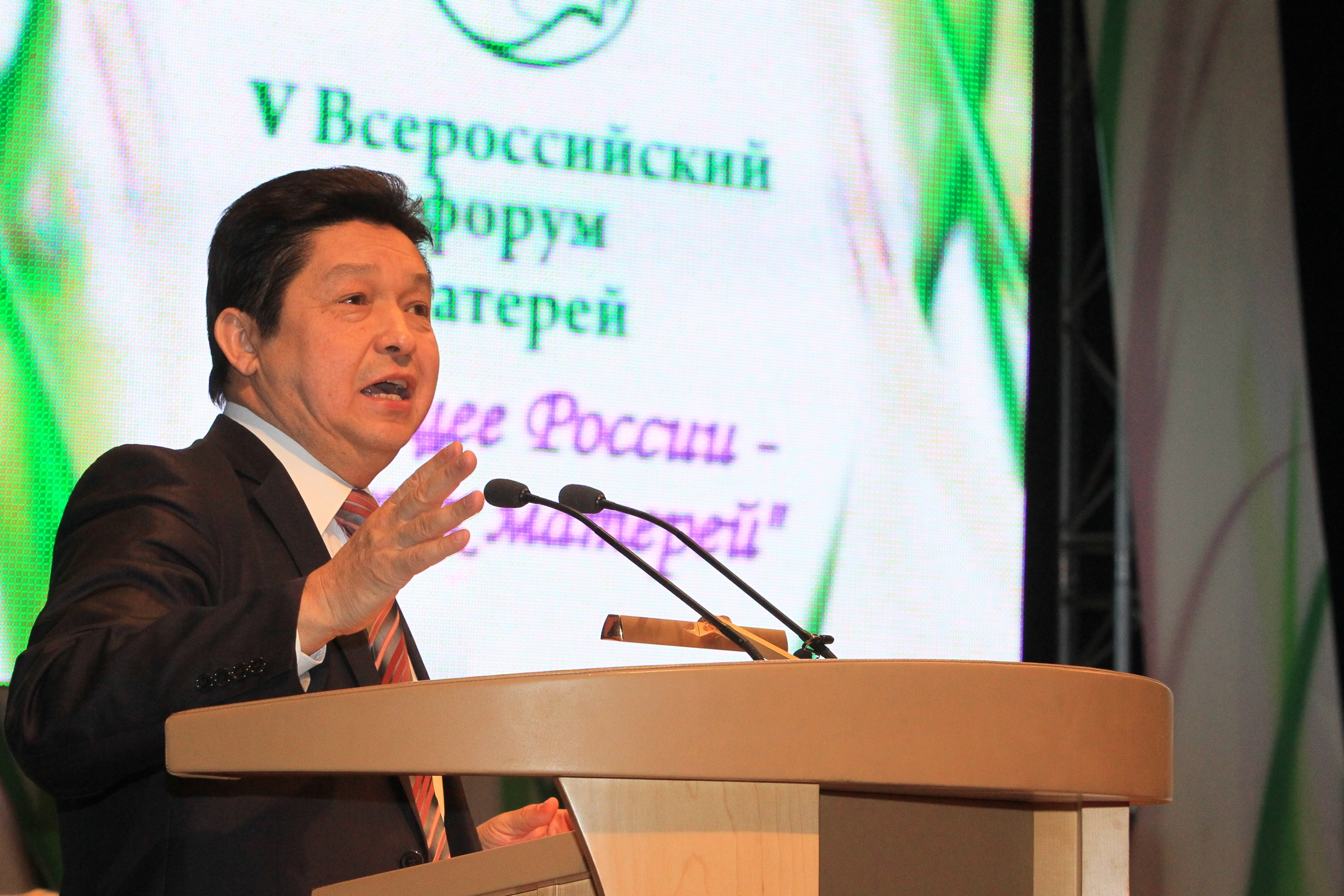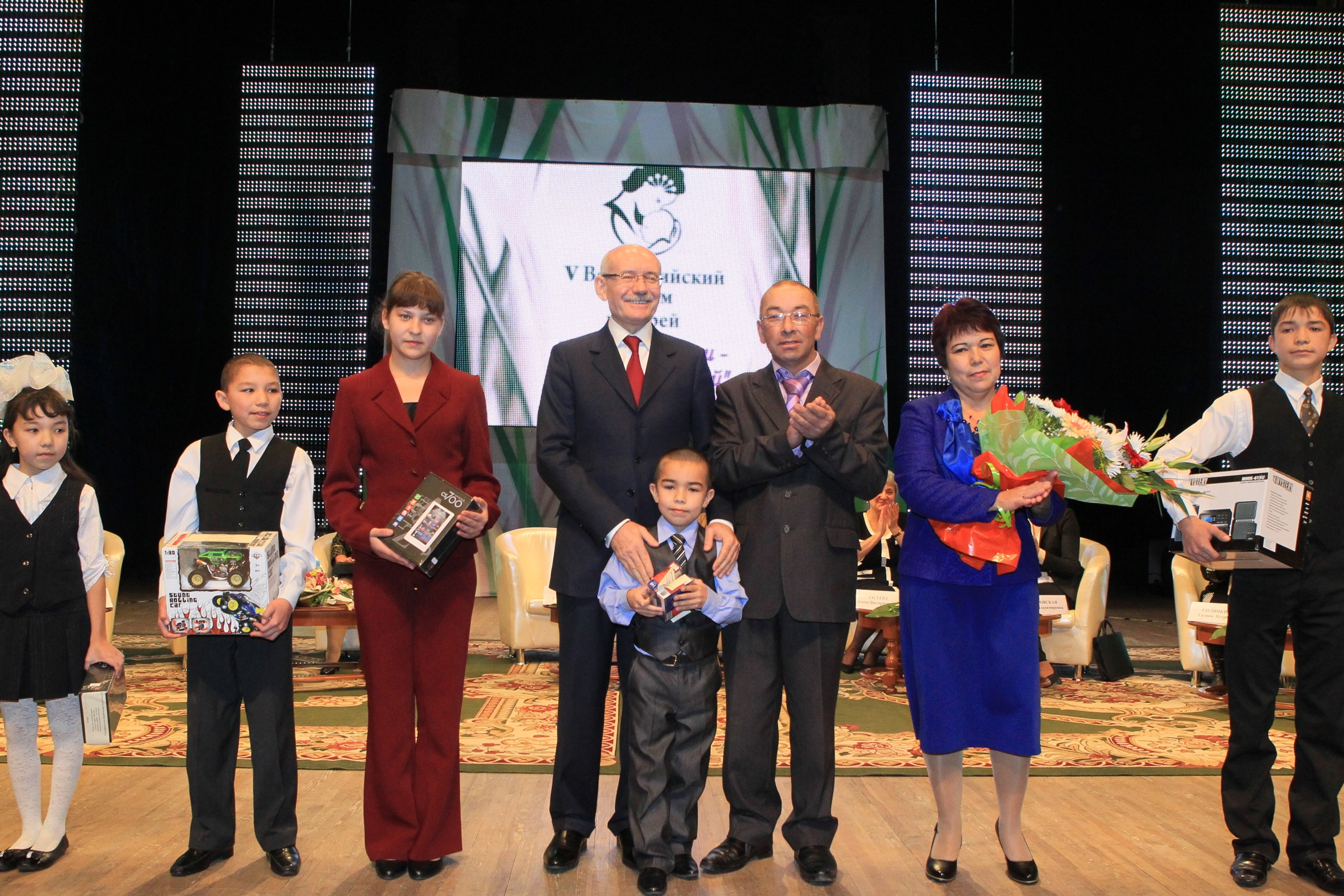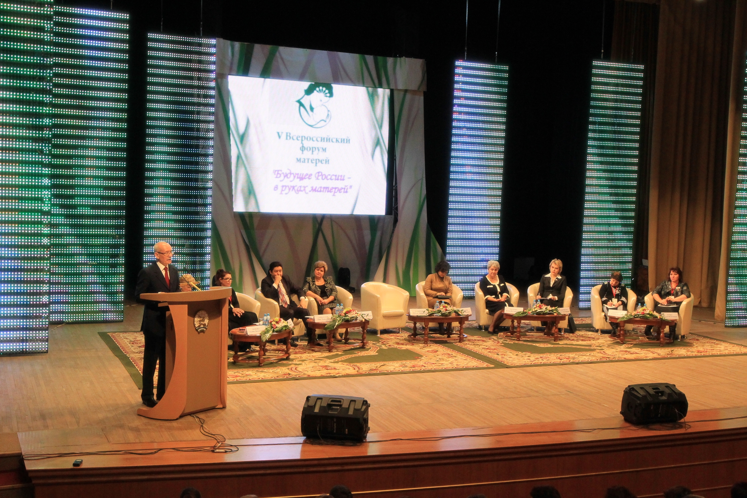 “When I am looking into this hall, wh such wonderful mothers from all over Russia are sitting, I am feeling that unbelievable energy, coming from you – the energy of love, warmth and care” - Rustem Khamitov mentioned - “Kids in Bashkiria make up about one fourth of the whole population. 650 thousand families nurse kids and this is the most important and the most valuable thing we have. Understanding the importance of protection of motherhood and childhood we try to do everything we can in all directions of this activity, erecting new schools and kindergartens all over the Republic, developing the network of the additional education institutions, centers and services for social and psychological aid for families and kids, paying serious attention to organization of summer rest for teenagers. By the number of pupils, having rest in our summer camps, we've held the first place in Volga federal district in 2010. We strengthen material and technical base of our obstetrical institutions, implementing additional measures for protection of pregnant women and kids from socially unprotected layers of population”.