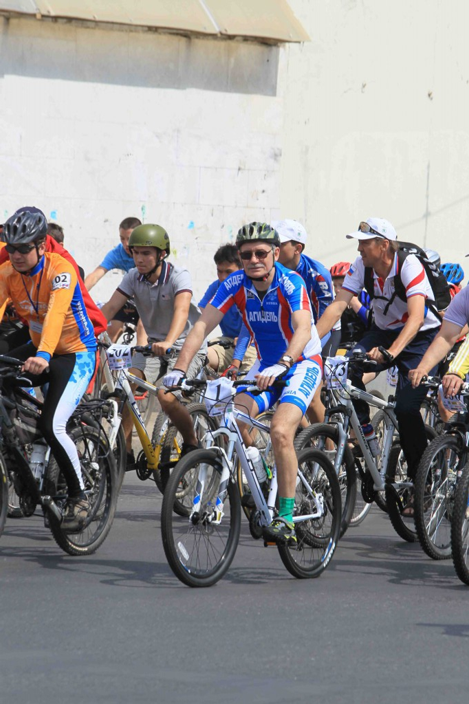 The President of Bashkortostan Rustem Khamitov has taken part in sports festival of bicycle movement “The Day of 1000 Cyclists”, devoted to the International Cyclist Day. Public affairs service of the President RB reports that together with participants of the action the President RB has ridden by bicycle from Lenin’s Square to Salavat Ulaev’s Square. The distance of the cycle race made up 10 kilometers and more than 1500 people were taking part in this sports festival, held in Ufa for the second time.