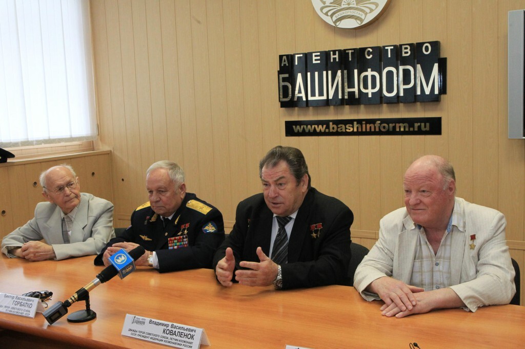 International children’s and youth festival “Gagarin’s Days in Ufa” will be held on May 21-23 and the legends of Russian cosmonautics, headed by the twice Hero of the Soviet Union, space pilot of the USSR, colonel-general of aviation, the president of Russian Cosmonautics Federation Vladimir Kovalenok, arrived in Ufa: twice hero of the Soviet Union, space pilot of the USSR, mayor-general Viktor Gorbatko, twice hero of the Soviet Union, space pilot of the USSR Alexander Ivanchenkov, , the hero of the Soviet Union, space pilot of the USSR, honorable test pilot of the USSR, mayor-general Igor Volk, space pilot of the USSR, representative of the Federal Space Agency “ROSKOSMOS” Oleg Skripochka, honorable test pilot of Russia, test space pilot of Russia Ural Sultanov, executive director of Russian Cosmonautics Federation, colonel Vyacheslaw Bardenkov and executive officer of Russian Cosmonautics Federation Victoria Sklyarova. Besides, our compatriot, Soviet cinema producer, cameraman Makhmud Rafikov arrived in the capital RB too.