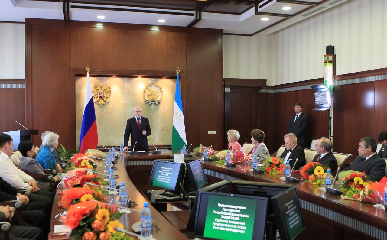 On Friday, December 14, the President of Bashkortostan Rustem Khamitov presented state awards of Russian Federation. 14 people have received medals, orders and ranks of honorable workers of Russia – representatives of health protection sphere, education and culture.