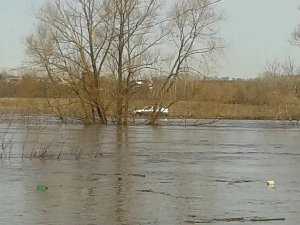 On the bridge there was a driver of the car «Daewoo Nexia»: because of water rising he could not drive to the bank. Now the driver is going round a flooding place — the situation is supervised by local administration.