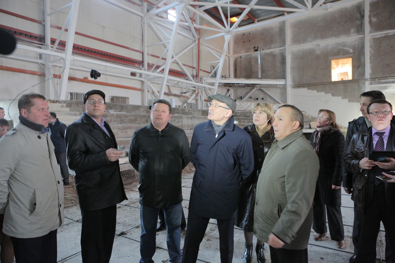 The President of Bashkortostan Rustem Khamitov during his working trip to Tuimazy examined a progress of ice arena construction.