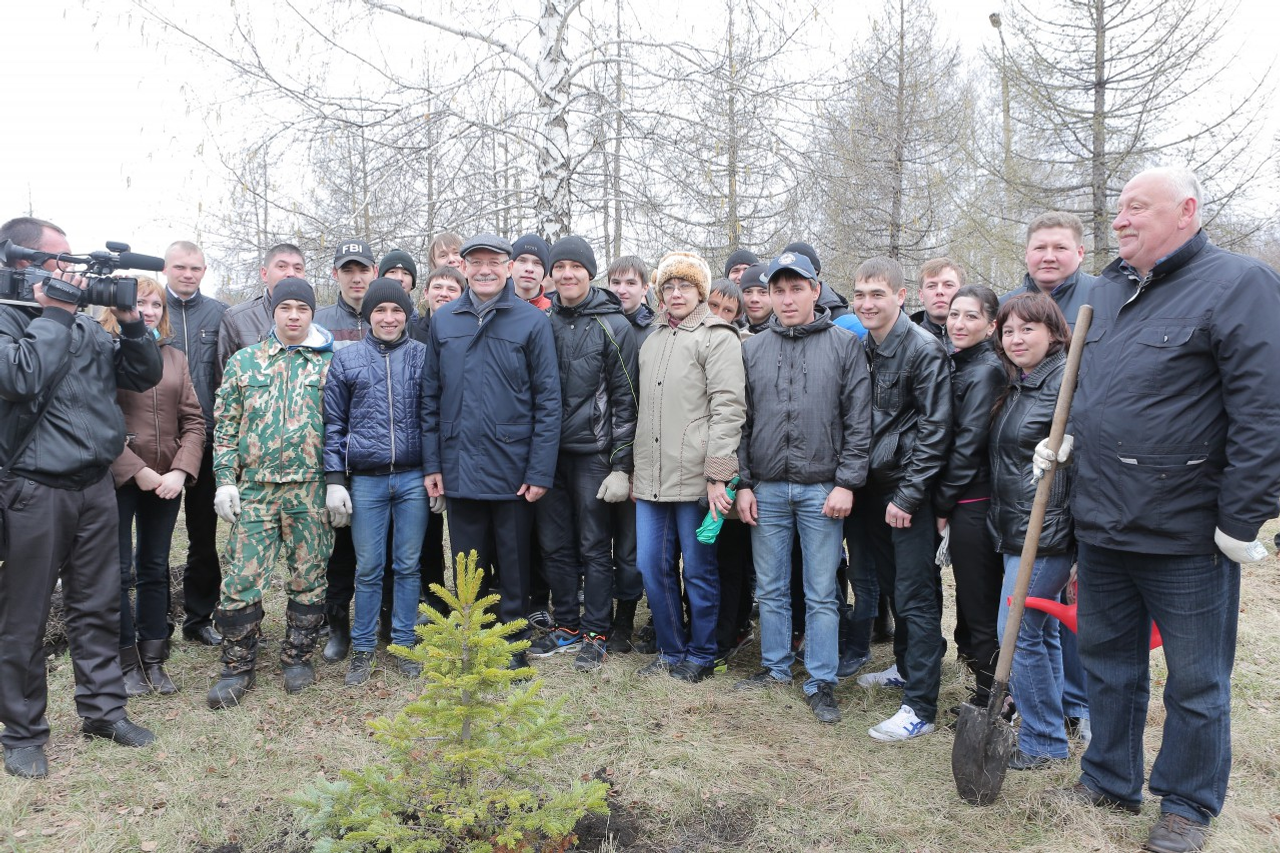 Further Rustem Khamitov took part in planting of fur-trees in the Central park of Tuimazy where young people initiated a volunteer clean-up.