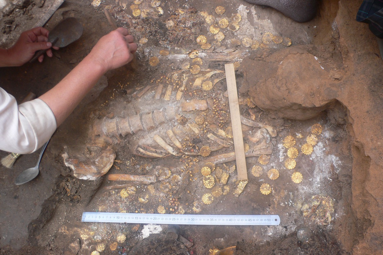 According to scientists, the abundance of gold items testifies to a high social status of the buried woman (a wife or a concubine of the chief).