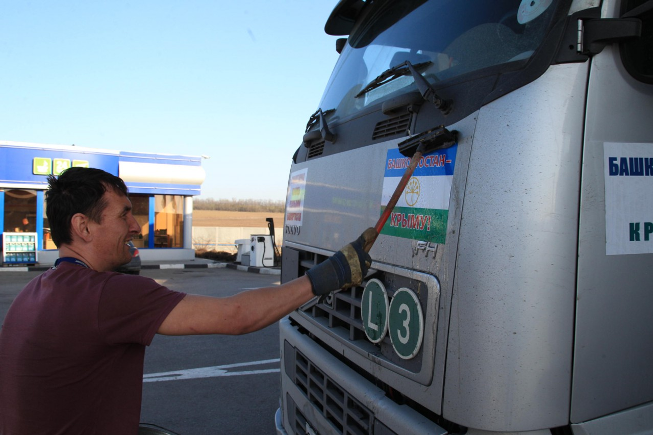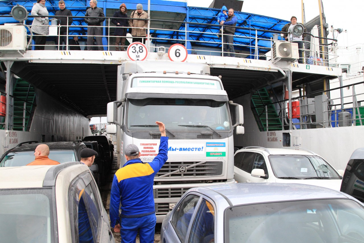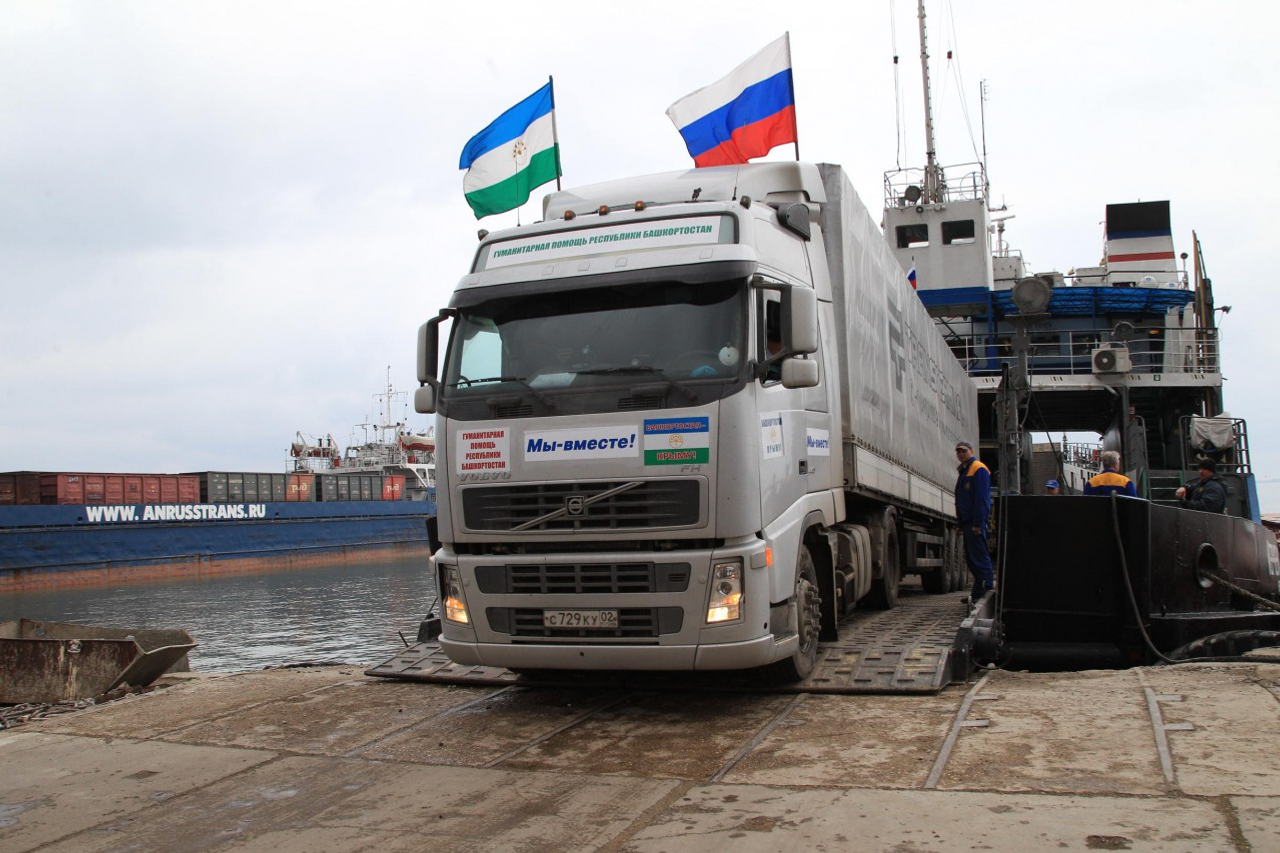 Yesterday the convoy carrying humanitarian aid from Bashkortostan to Crimea residents arrived in the seaport of Kerch. As the member of the expedition, the head of the press service of the Government RB Pavel Samoilin informs, no problems arise on the way, everything goes well, as scheduled. The convoy still has about 250 km to go to Simferopol, the capital of the Republic of Crimea.