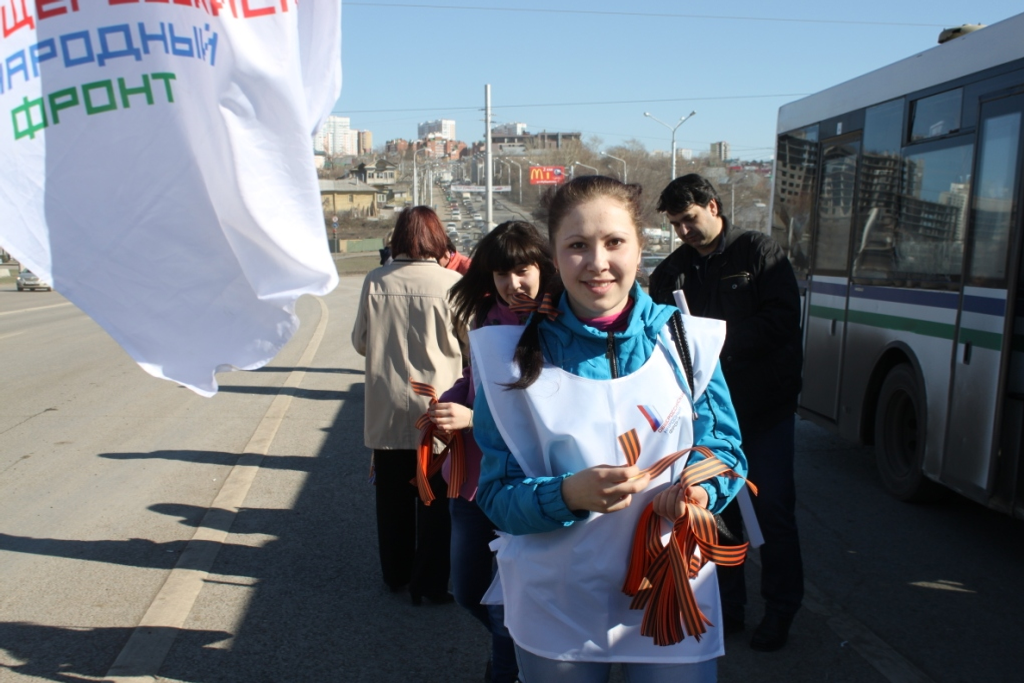 On the eve of the Great Victory representatives of the Regional Branch of the Russian Public Movement "People's Front - For Russia in the Republic of Bashkortostan" held a traditional patriotic event "St.George Ribbon. I remember and I 'm proud."