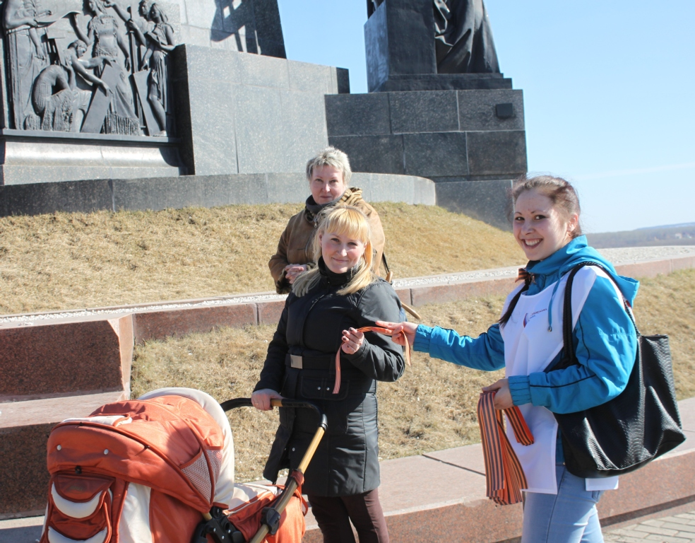 The Movement active members handed out to residents of the republic symbols of Victory. These days in the capital of Bashkiria it was possible to get a ribbon in Victory Park, in Salavat Yulaev Square, in the Mazhit Gafuri’s Central Park of Culture and Rest, near the Friendship Monument. Total over two thousand ribbons were given out.