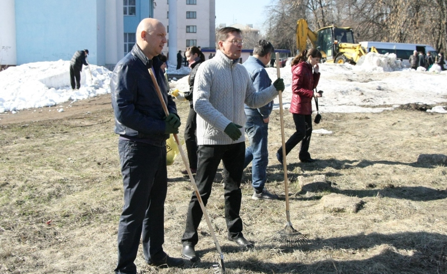 The deputies of the City Council also attended the event. The Chairman of the Council Eugene Semivelichenko was engaged in accomplishment of Inors district- he participated in the clean-up together with the employees of UMPO company.