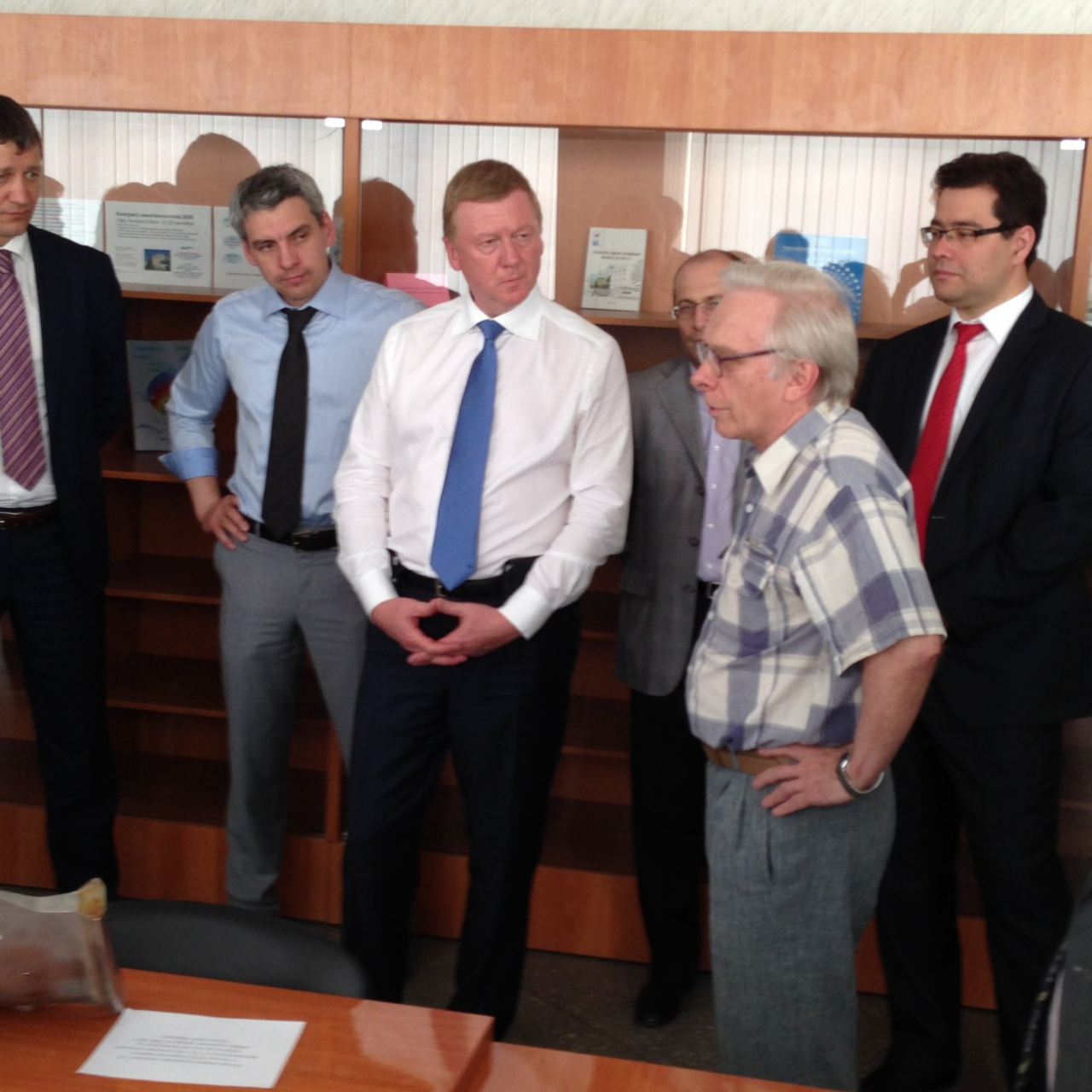 Anatoly Chubais, the Chairman of the Board of JSC "RUSNANO" during his working trip to Bashkortostan visited Ufa State Aviation Technical University. He visited the Multiple-Access Centre of "Nanostructured Materials and High Technology" scientific-educational centre.