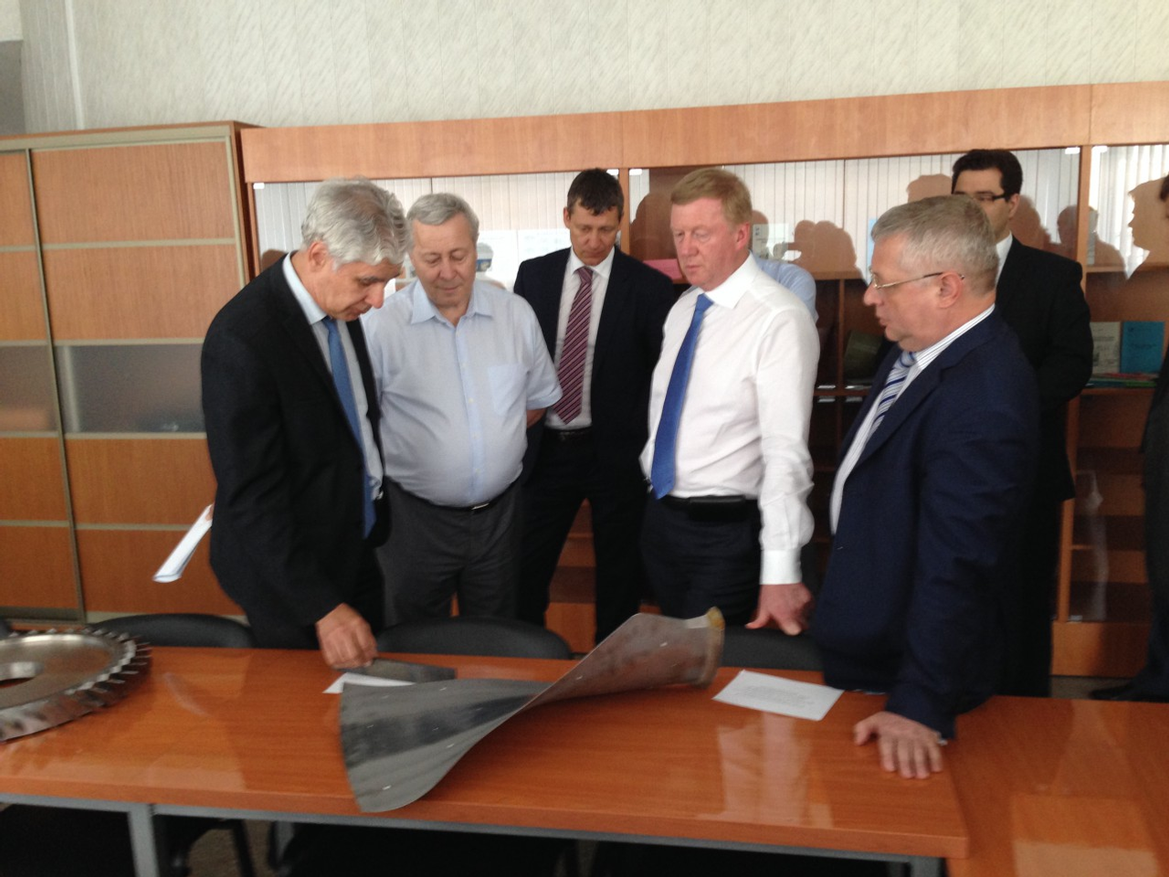 Anatoly Chubais acquainted with results of work on creation of prototype aircraft engine blades of the new generation. Having demonstrated awareness of the research related to the bulk nanostructured materials, he highly estimated scientific work of the USATU Professor Ruslan Valiev, having named him the leader in this field of science in Russia.