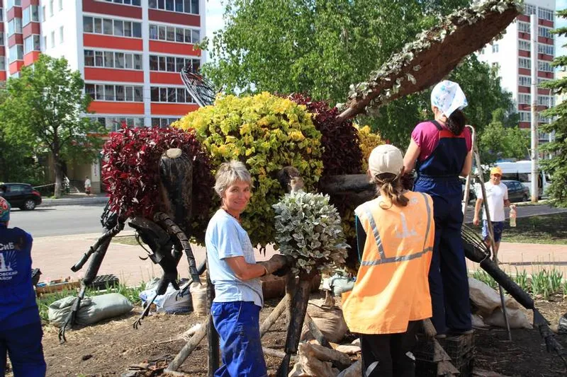 Recall that architectural and floral composition "Bashkir Bee" was established in Soviet Square in 2007. Five years later it was moved to a crossroad of Gafuri and Pushkin Streets in Ufa.