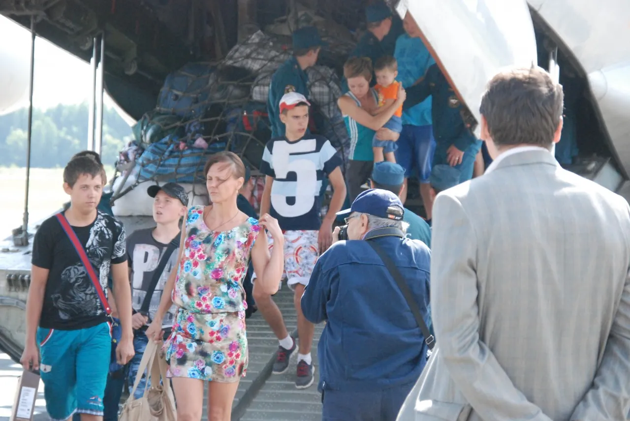 A special flight of the Emergencies Ministry RF delivered 100 IDPs to the Ufa international airport from Ukraine. Among them there were 35 children, who left the country because of a military conflict.