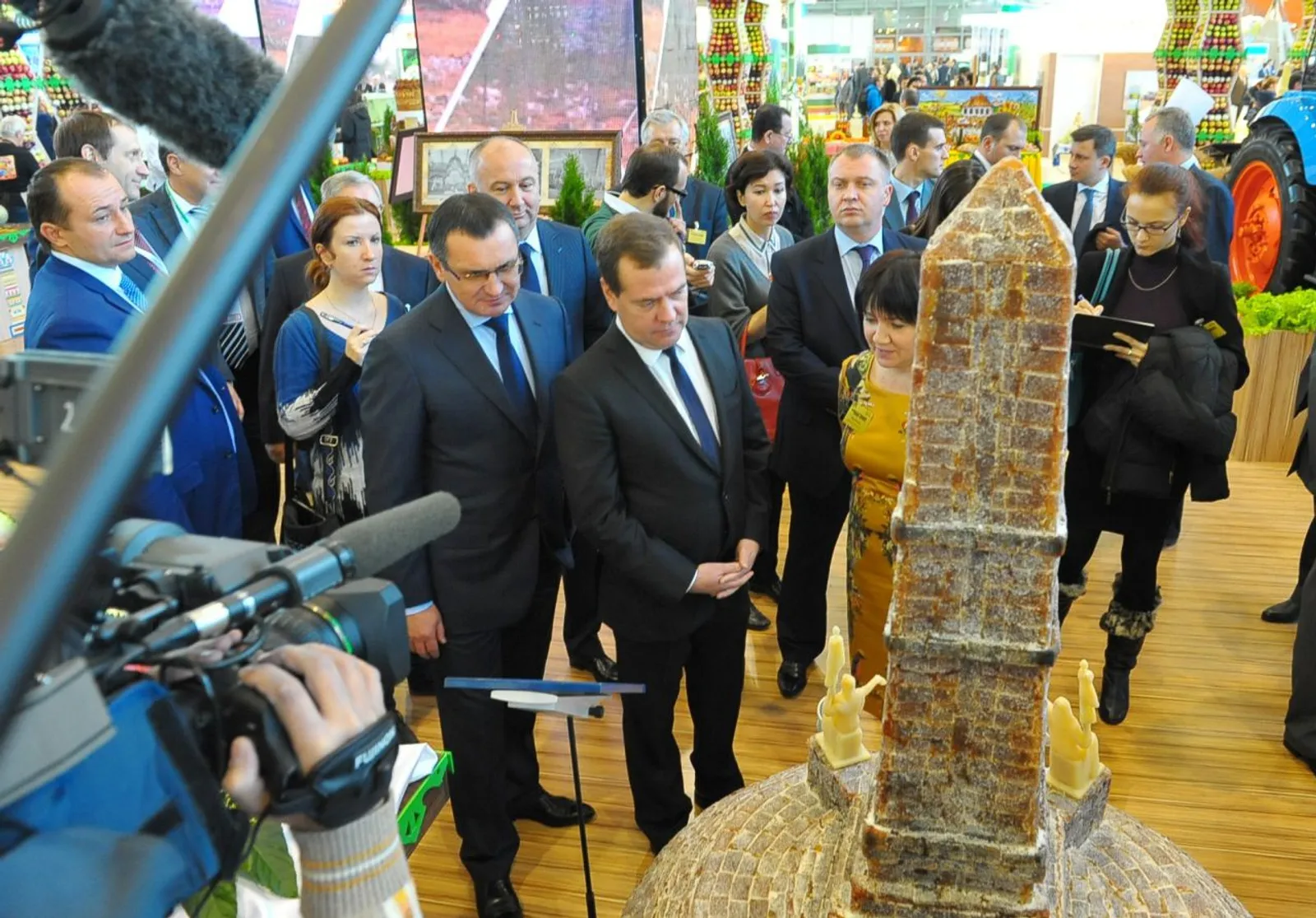 UFA, 10 October 2014. /Bashinform News Agency, Iliya Spiridonov/. The Russian Prime Minister Dmitry Medvedev took part in the opening ceremony of the XVI Russian agricultural exhibition "Golden Autumn", which is taking place in Moscow these days. In his speech he noted the contribution of farmers in food supply security in Russia and presented state awards to the best representatives of the industry.