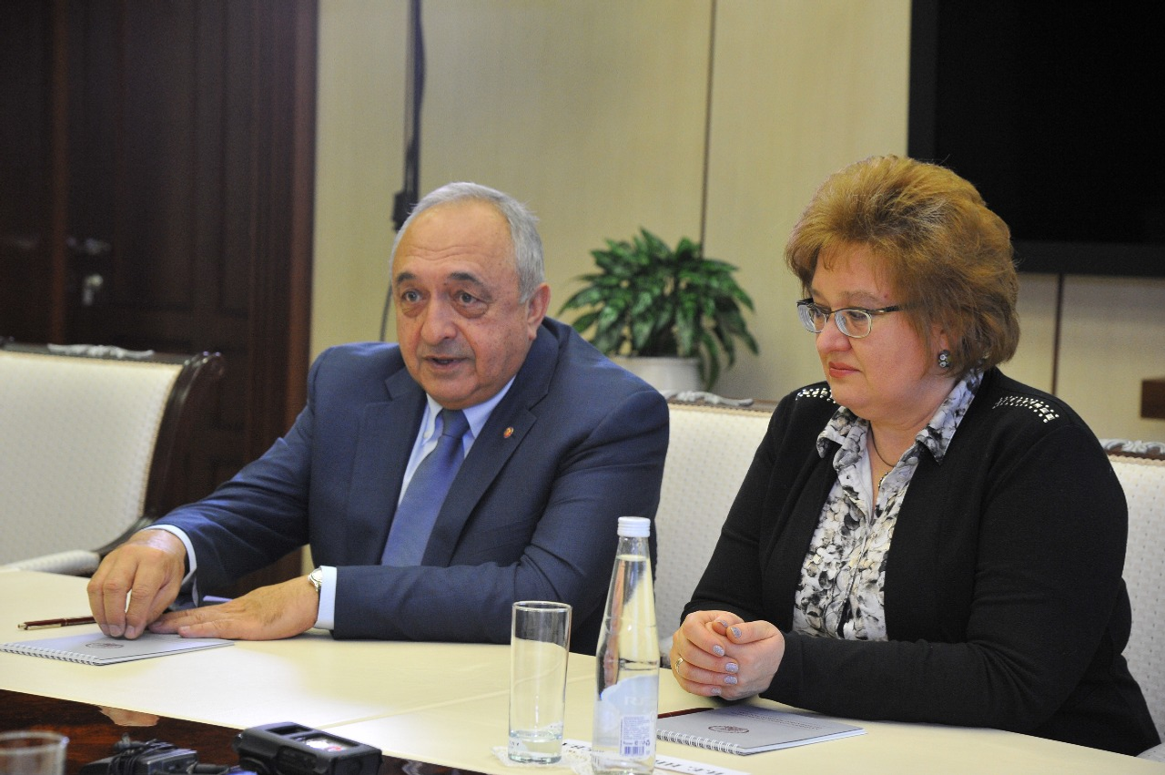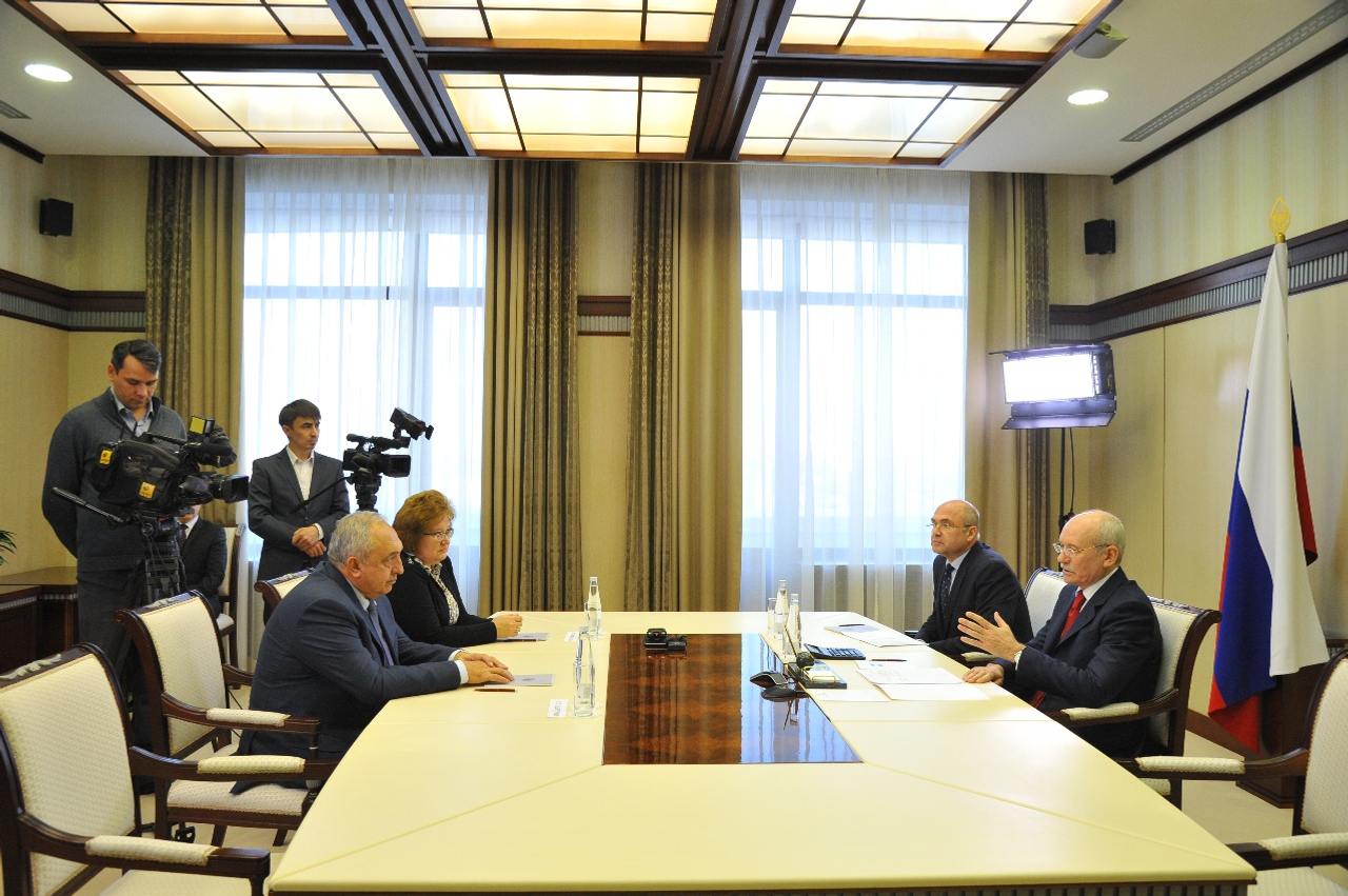 UFA, 9 December 2014. /Bashinform News Agency, Iliya Spiridonov/. On December 8, the President of Bashkortostan Rustem Khamitov met with the famous Russian cardiac surgeon, MD, Professor Renat Akchurin, who arrived in Ufa to participate in research and practice conference "Cardiology and Cardiac Surgery – One View of a Problem". The parties discussed prospects of development of the republican cardiology service within the announced by the Russian President Vladimir Putin the National Year of Fighting Cardiovascular Diseases, as well as ways to increase the life expectancy and decrease mortality in Bashkortostan.