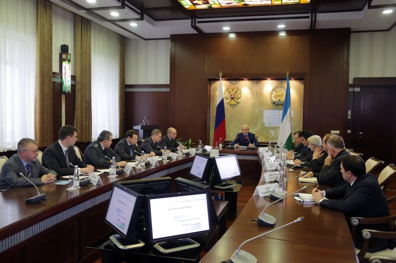 UFA, 16 December 2014. /Bashinform News Agency, Iliya Spiridonov/. On December 15, at the House of Republic the President of Bashkortostan Rustem Khamitov held a meeting on the transport system development in Ufa. It was attended by members of the Government of Bashkortostan, Ufa administration representatives, heads of ministries and departments, as well as domestic and foreign experts in the field of urban development.
