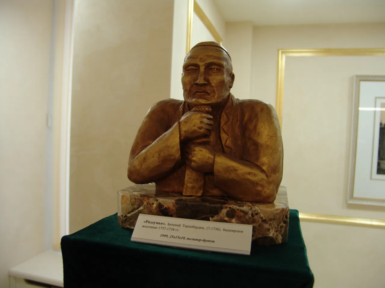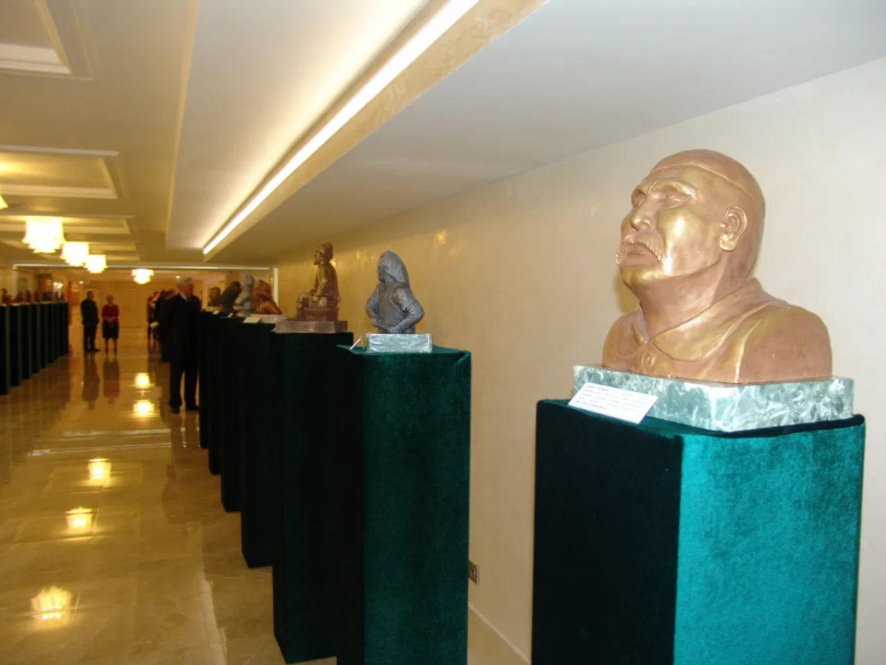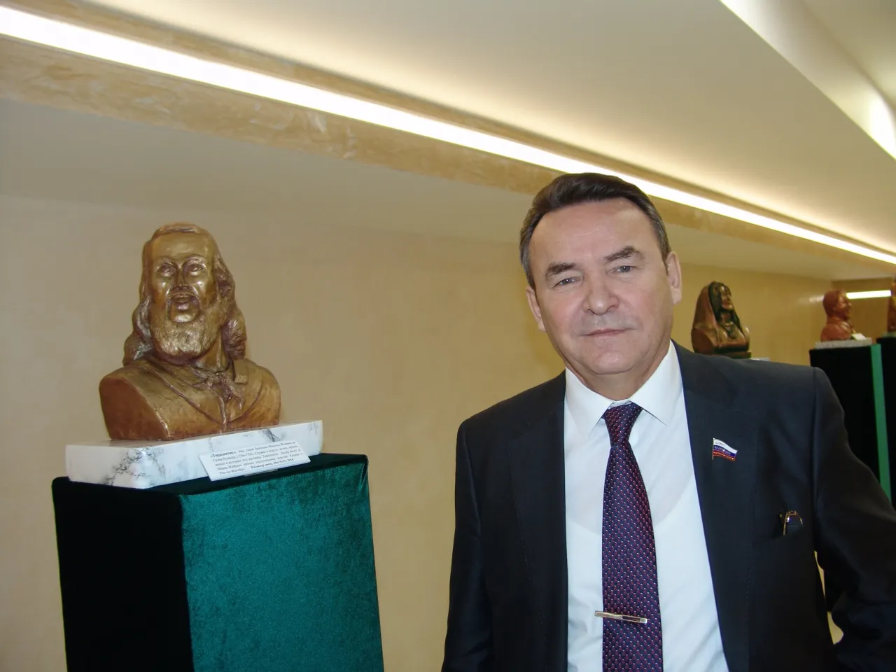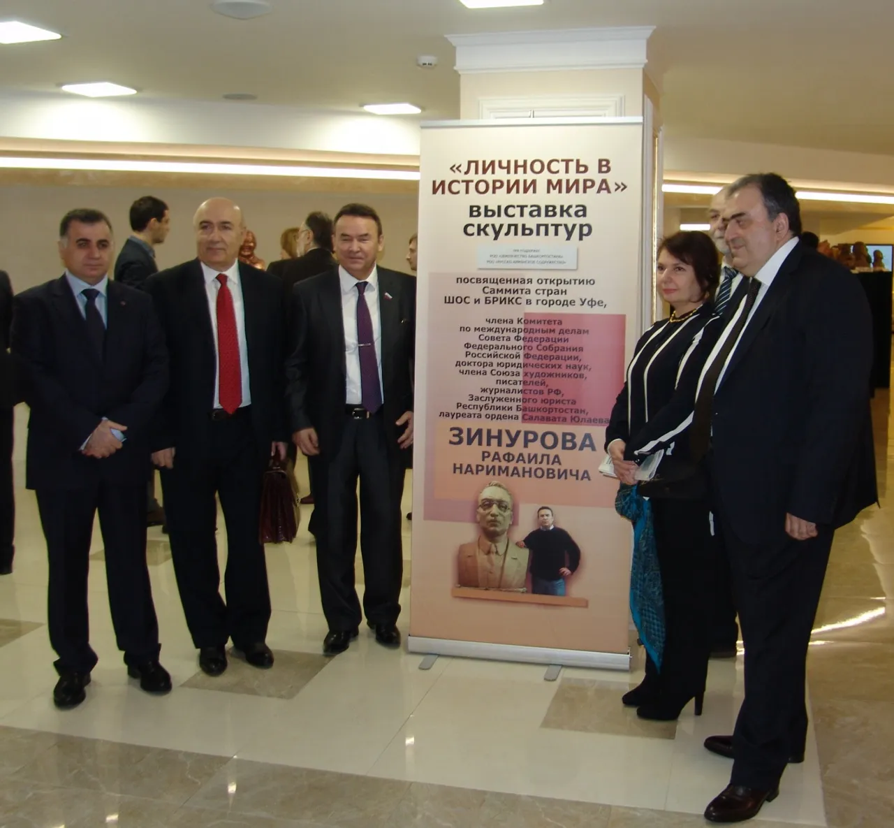 UFA, 2 April 2015. /Bashinform News Agency, Gulchachak Khannanova/. A solo exhibition of sculptures by Senator from Bashkortostan, member of the Federation Council Committee for Foreign Affairs, the Head of "Bashkortostan Community" in Moscow, Doctor of Law, member of the Union of Artists, Writers and Journalists of Russia, sculptor Raphael Zinurov opened in the lobby of the Federation Council. The exhibition titled "Personality in the History of Countries of the World" is dedicated to the upcoming SCO and BRICS Summits in Ufa and consists mostly of busts of famous national heroes of these countries. The opening of the exhibition was visited by many senators, as well as the Chairman of the Federation Council Valentina Matvienko, who invited all members of the Russian parliament to visit the exhibition and expressed satisfaction that in the ranks of the Russian senators there were people having talents not only to politics.