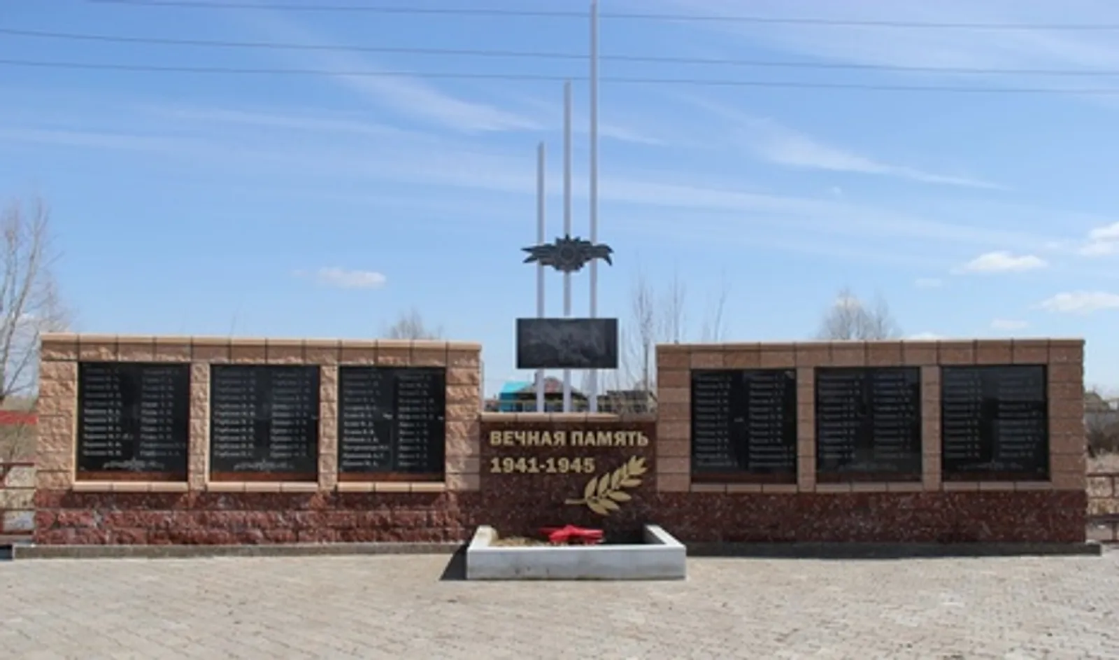 The memorial is a set of marble slabs carved with the names of the soldiers. Its central part is decorated with a golden inscription "Eternal memory. 1941-1945" and a laurel branch as a symbol of glory, victory and peace. At the foot of the stele a capsule of Eternal Flame as a red star is mounted.