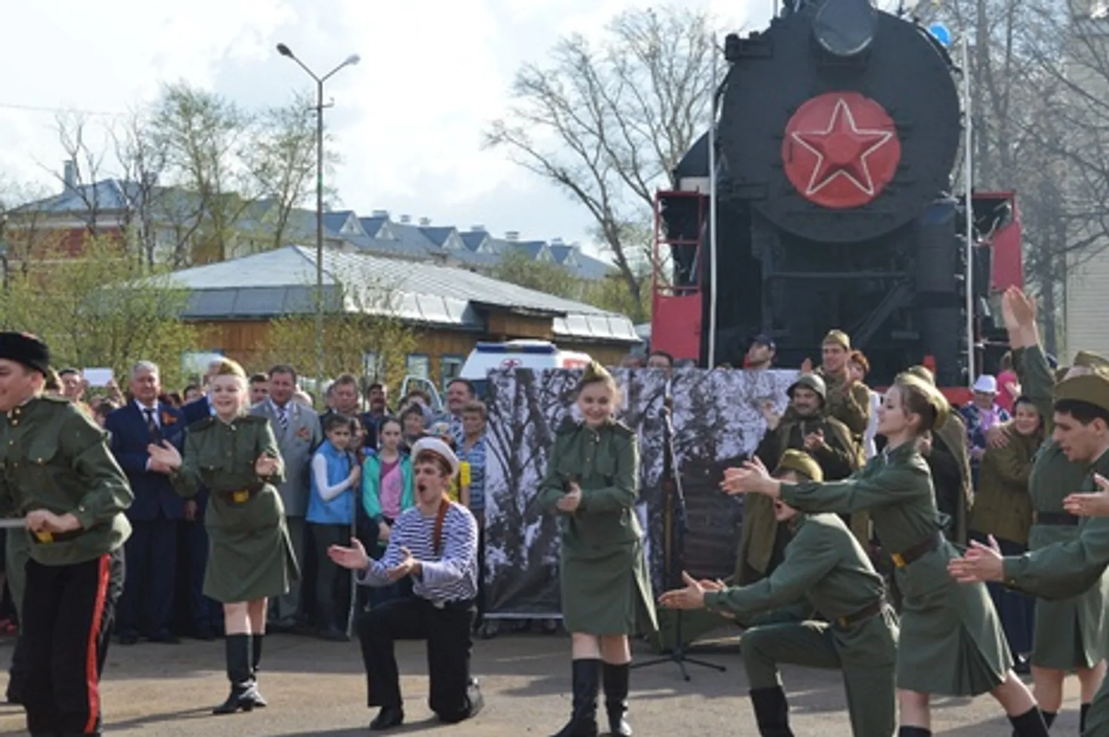 The "Victory Train" was formed at the Gorki railway to the 70th anniversary of the Victory. The veterans - participants of war who worked on the railway travel by the "Victory Train". It started from Nizhny Novgorod in the morning on May 2. The Holiday Train is a steam locomotive, colourfully decorated with wreaths, garlands, photographs of the war years and festive posters. The memorial train includes a platform with military equipment: tanks, guns, and a car with a mobile kitchen and a car-museum. The train goes via the Gorky railway through the stations of "Dzerzhinsk", "Ilyino", "Kovrov", "Vladimir", "Murom", "Arzamas", "Sergach", "Kanash", "Kazan", "Vyatskiye Polyany" "Mozhga", "Agryz" and other items. Solemn celebrations are held at all major railway junctions - meetings, laying wreaths to the monuments, performances of creative groups, tours and fireworks.